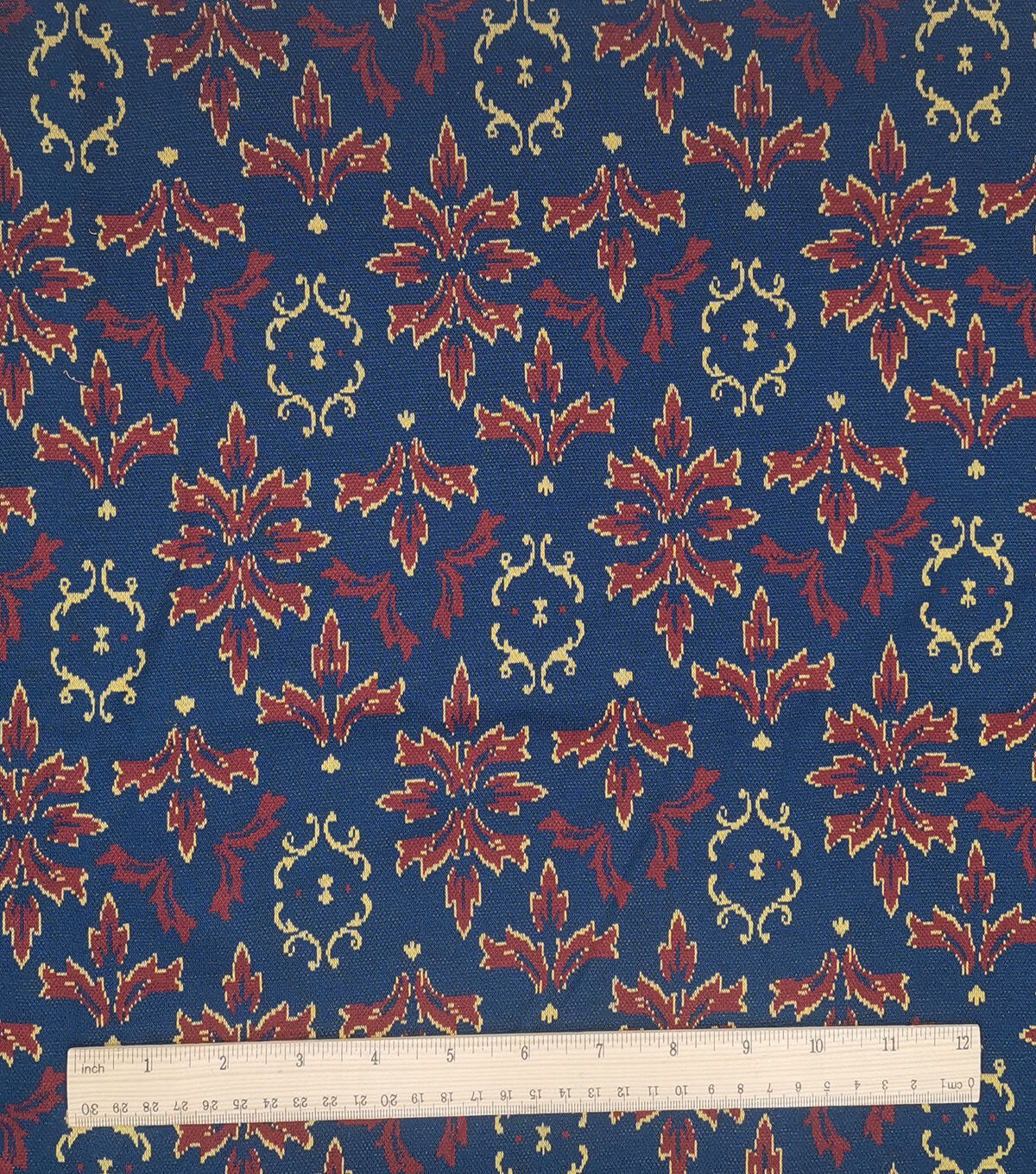 Navy & Red Damask Jacquard Fabric