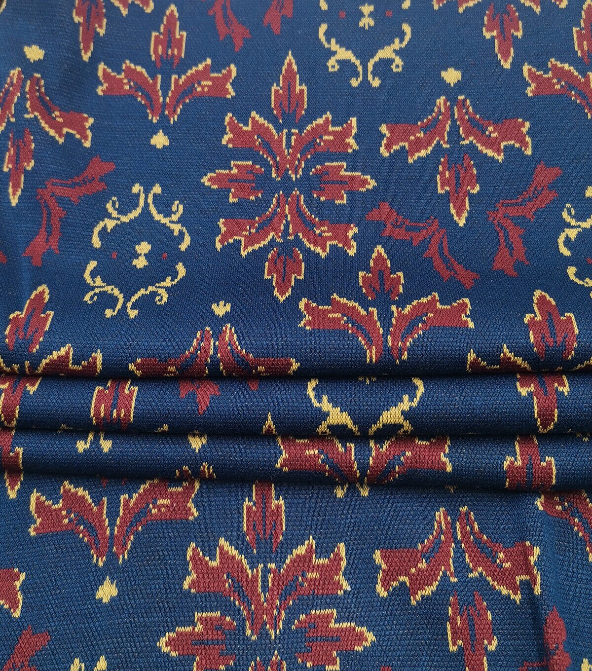 • Navy & Red Damask Jacquard Fabric