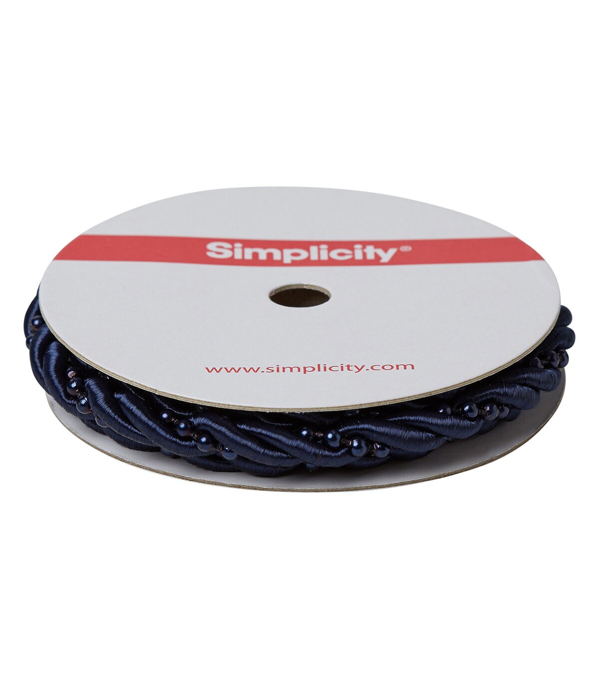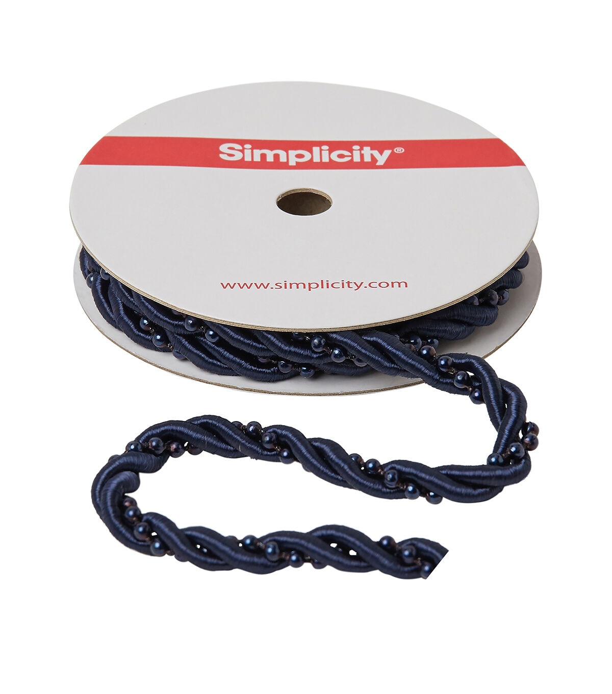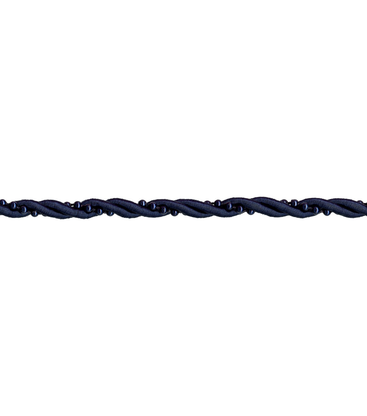 This elegant 1/4 inch navy twisted cord trim with pearls is a cotton/polyester blend. Use this elegant trim for apparel design, home décor inspirations and so much more!
