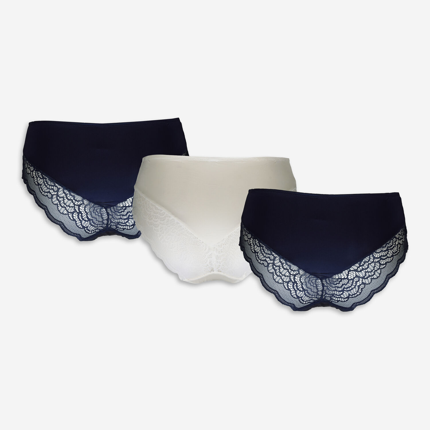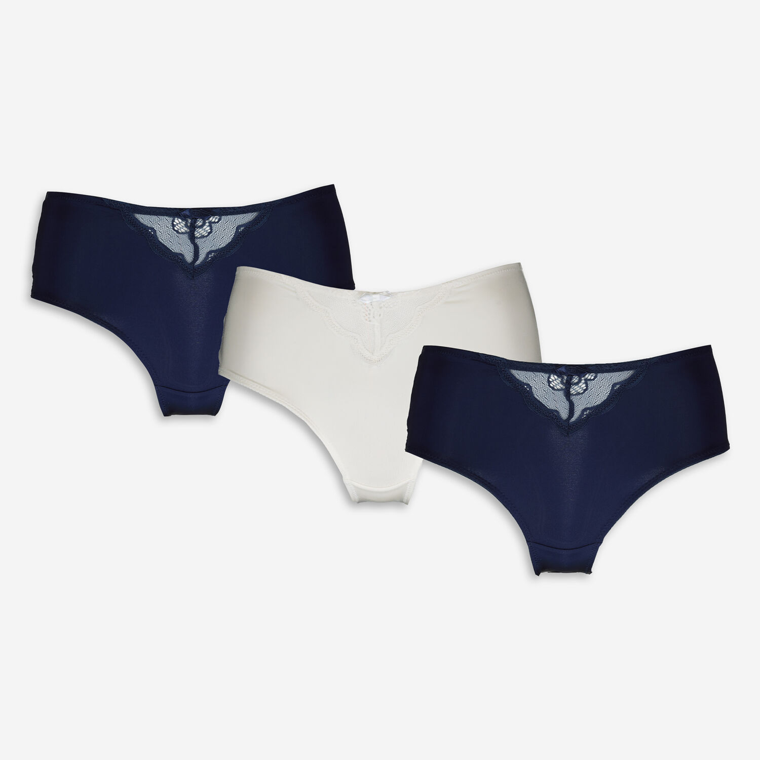 • Navy & White Three Pack Lace Knickers