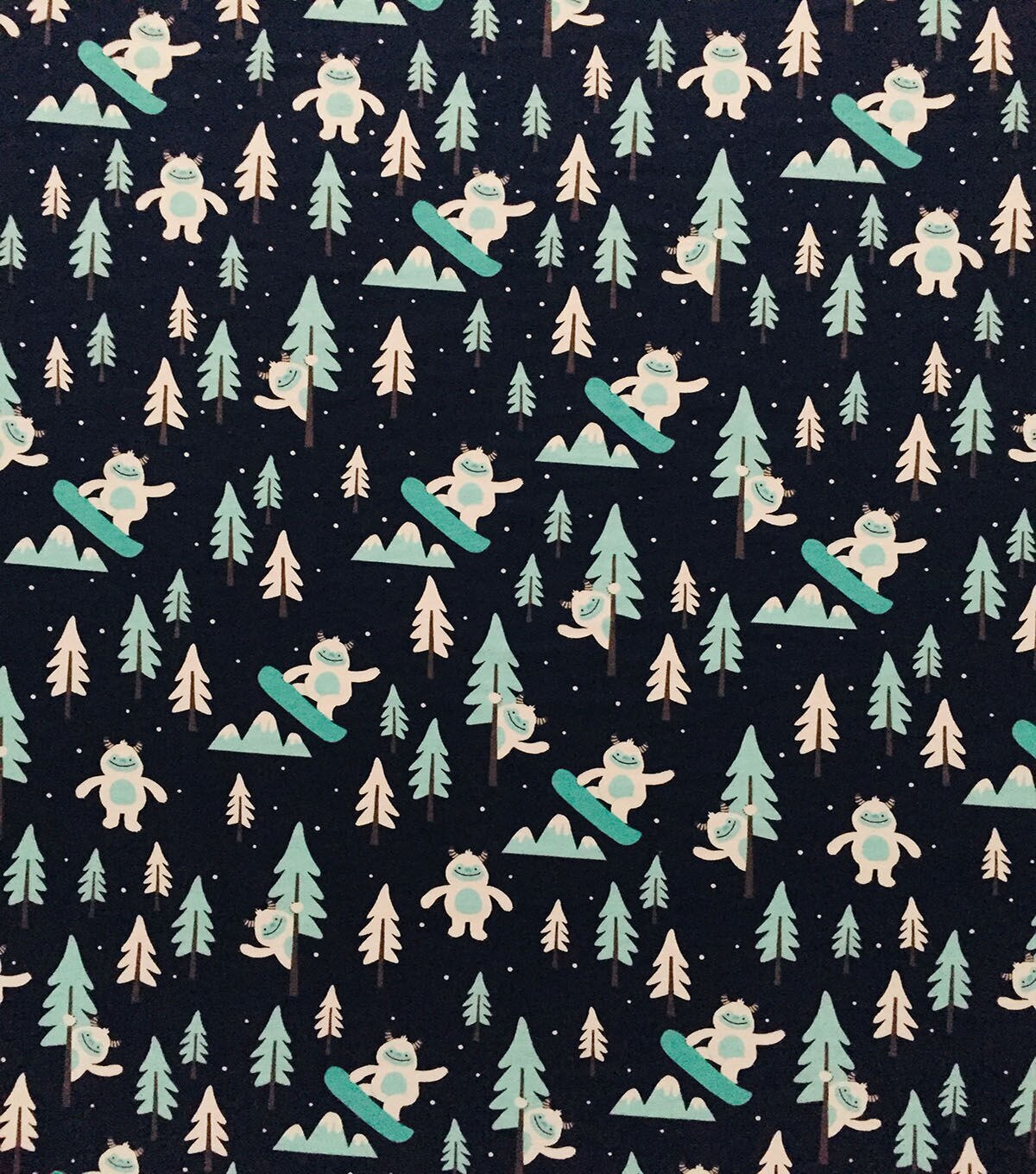 • Navy Yeti Snowboard Jersey Knit Fabric by POP!