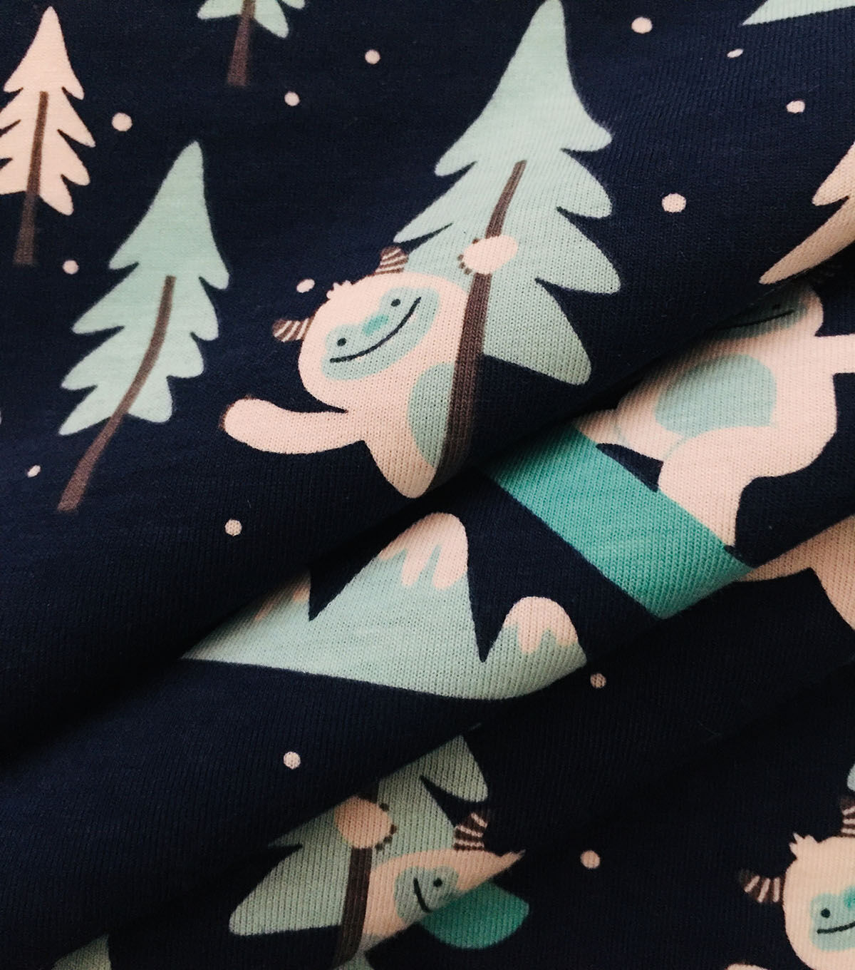 Navy Yeti Snowboard Jersey Knit Fabric by POP!