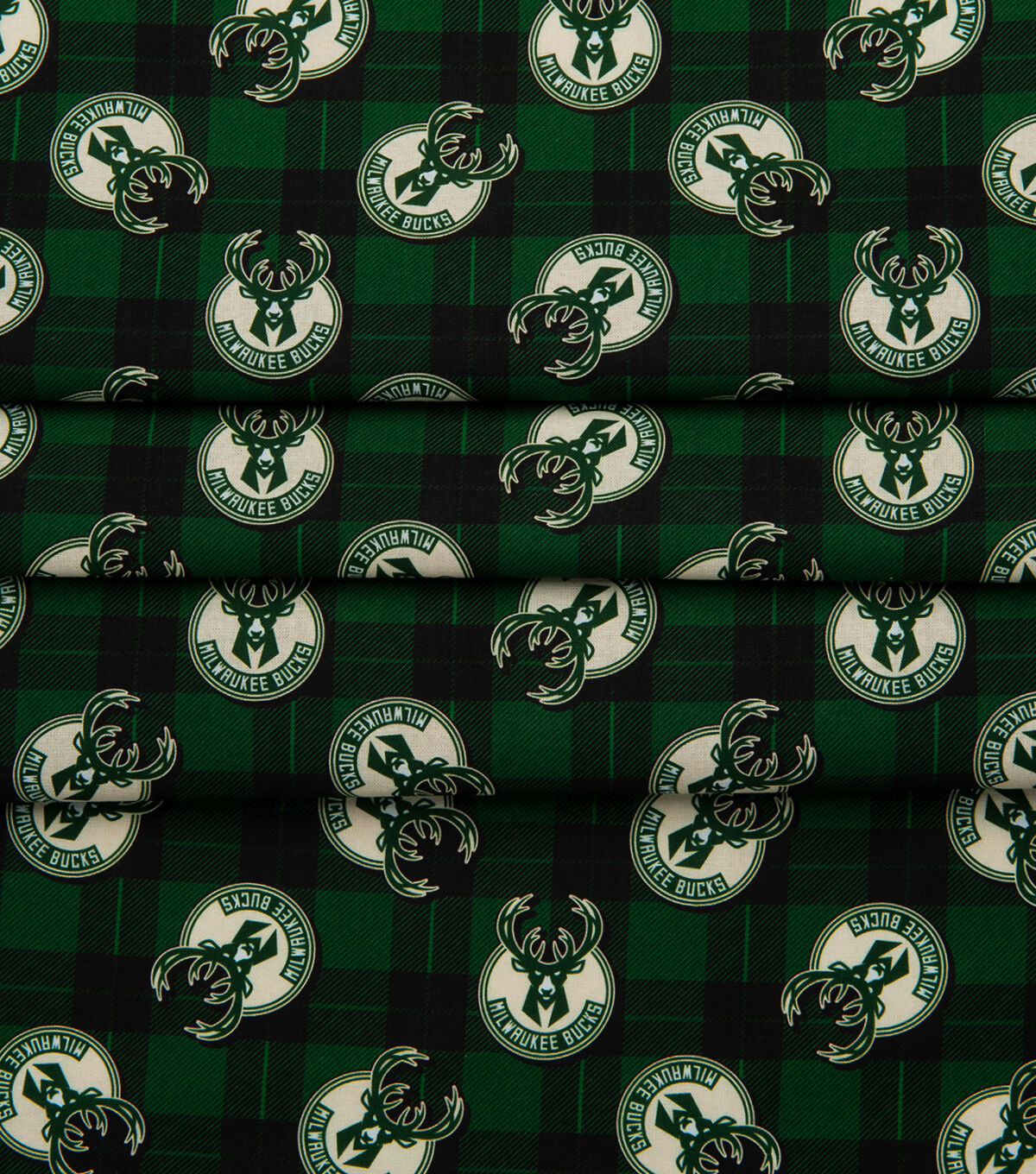 NBA Milwaukee Bucks Plaid Logo Cotton Fabric
