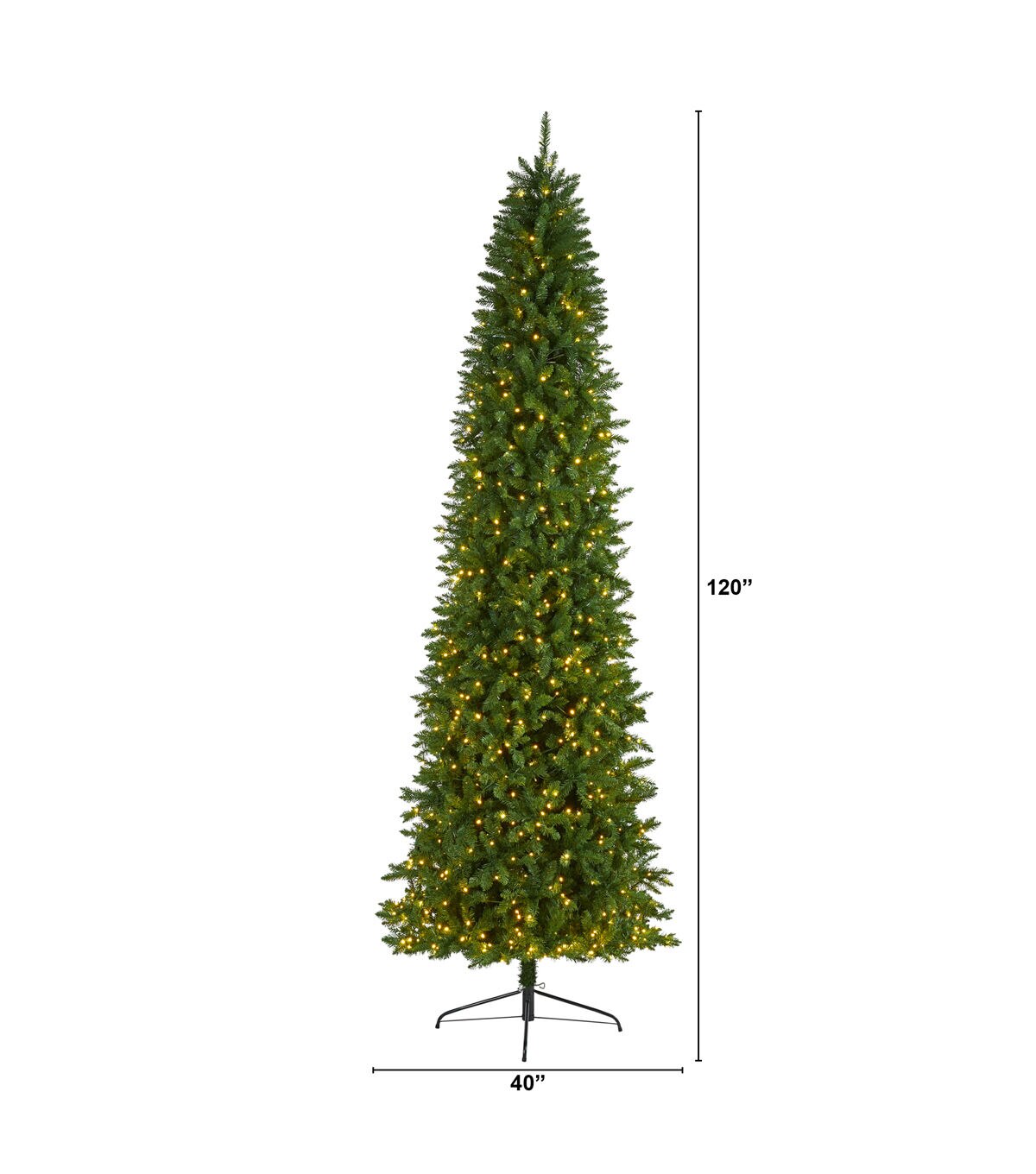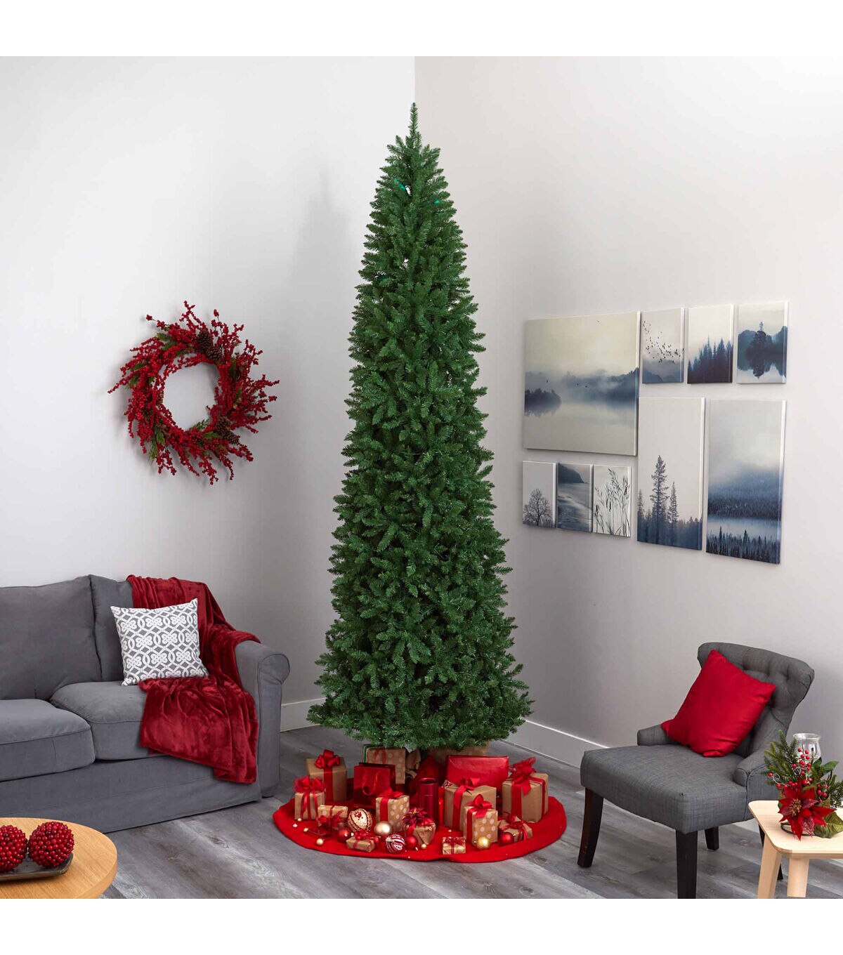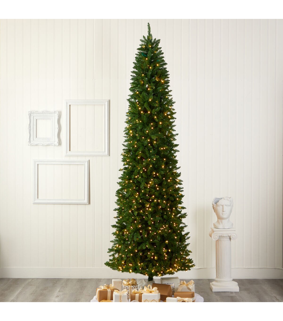 Incorporate seasonal evergreens into your decor scheme this holiday - even in the tightest spaces! - with the help of this artificial Christmas tree. Entirely maintenance free, it features a slim, tight silhouette made up of mountain pine greenery with 2420 easy-to-bend branches for showcasing all your holiday ornaments and arrives pre-strung with 800 clear LED lights to help eliminate the hassle of tangles or knots. Guaranteed to make holiday decorating stress-free, this slim-fitting artificial Christmas tree stands tall and proud at 10’, stabilized on a metal stand for effortless display all season long. About Nearly Natural Inc. - For over 75 years, Nearly Natural Inc. has been providing conscientious consumers with beautiful alternatives to natural decorations. Employing and advised by naturalists who understand the live plant world, Nearly Natural is able to recreate the most realistic-looking decorative items for homes, offices, and businesses. Driven by a true commitment to customer service, attention to detail, and natural philosophy, Nearly Natural strives to bring customers the most beautiful, unique, and striking faux plants and floral on the market.
