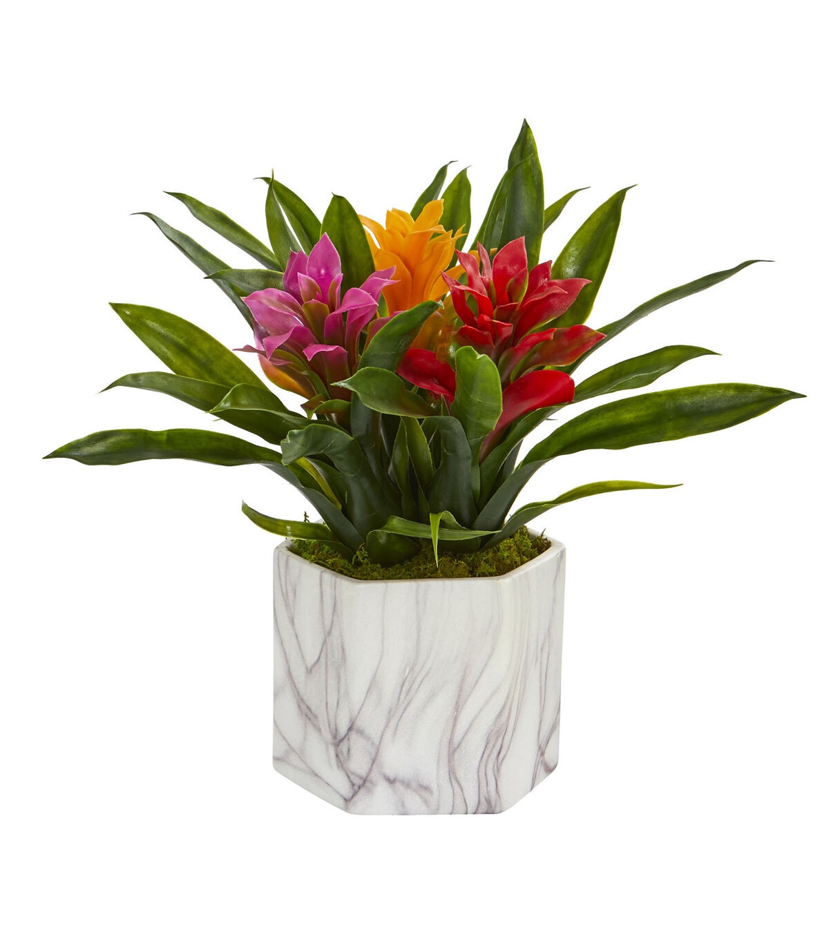 - From enhancing your living room to adding a touch of elegance to your office or bedroom, the bromeliad in its marble finished vase fits effortlessly into any setting, complementing various interior styles.