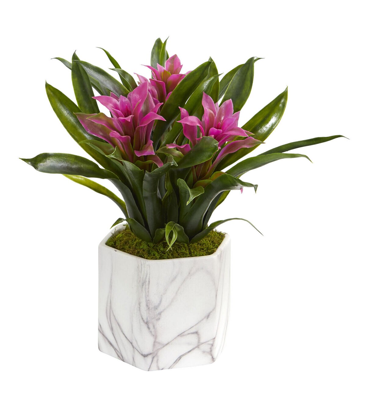 - From enhancing your living room to adding a touch of elegance to your office or bedroom, the bromeliad in its marble finished vase fits effortlessly into any setting, complementing various interior styles.