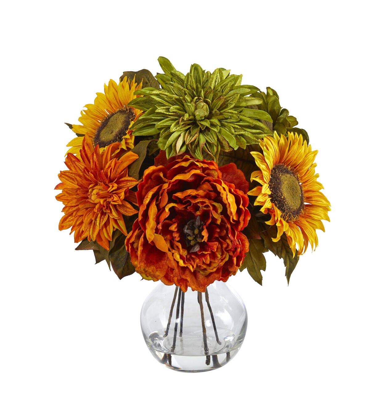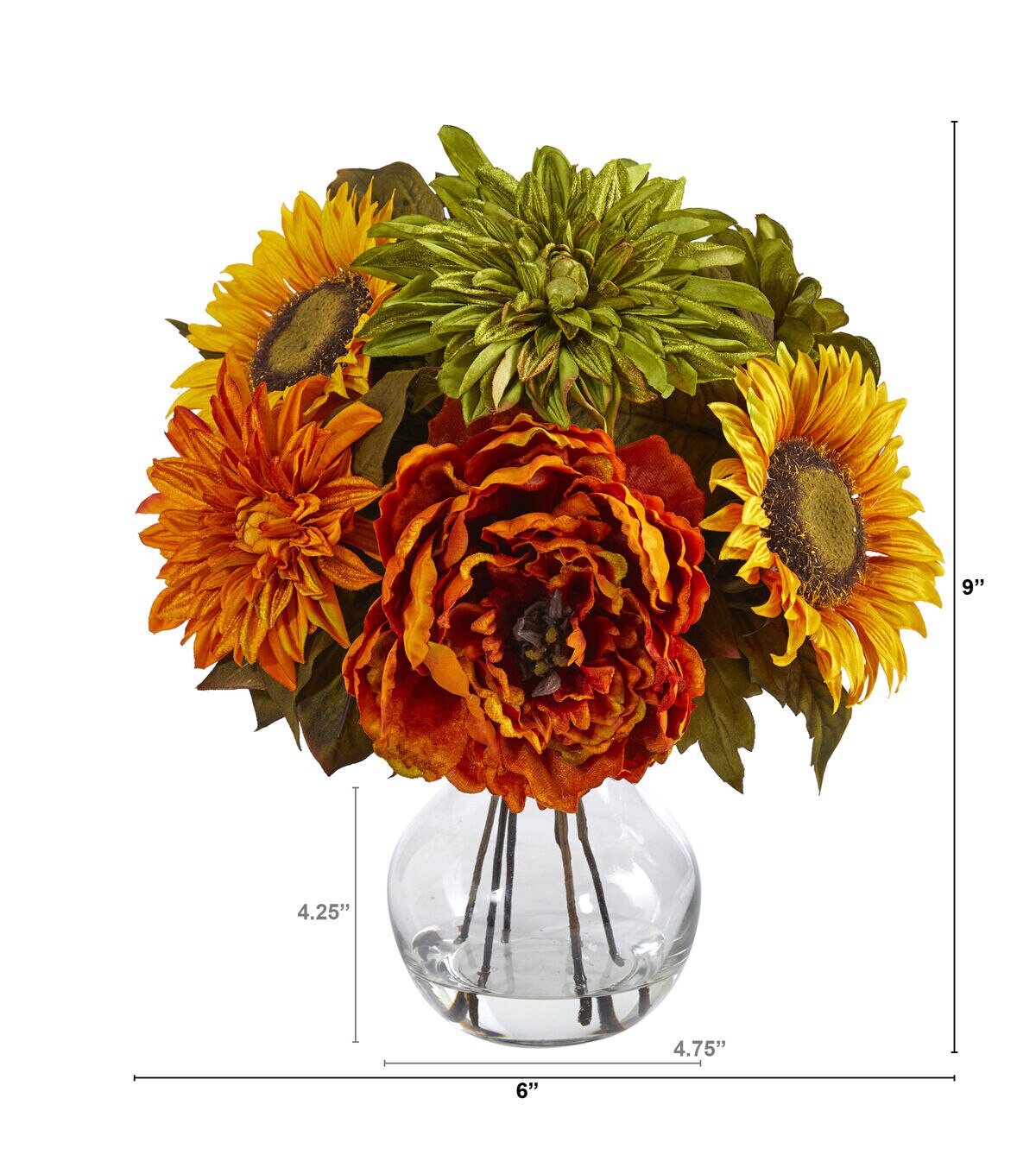 Fancy a fresh from the garden feel? Experience beauty all year long with this hand-crafted feminine Peony, Hydrangea, and Dahlia artificial arrangement. Variegated flower buds pop from intricately detailed flowers in bloom, creating a textured medley of foliage. Standing at 12” from a clear vase, seek the attention of all who lay eyes on her. Create your own forever garden today with no maintenance. Silk arrangements are manufactured using synthetic materials, such as polyester material or plastic, and are well designed and constructed to be life-like in appearance. This item will need to be re-shaped when removed from the secure box to allow it to reach its fullest size. Your artificial arrangement will look beautiful for years to come; simply wipe clean with a soft dry cloth when needed. About Nearly Natural Inc. - For over 75 years, Nearly Natural Inc. has been providing conscientious consumers with beautiful alternatives to natural decorations. Employing and advised by naturalists who understand the live plant world, Nearly Natural is able to recreate the most realistic-looking decorative items for homes, offices, and businesses. Driven by a true commitment to customer service, attention to detail, and natural philosophy, Nearly Natural strives to bring customers the most beautiful, unique, and striking faux plants and floral on the market.