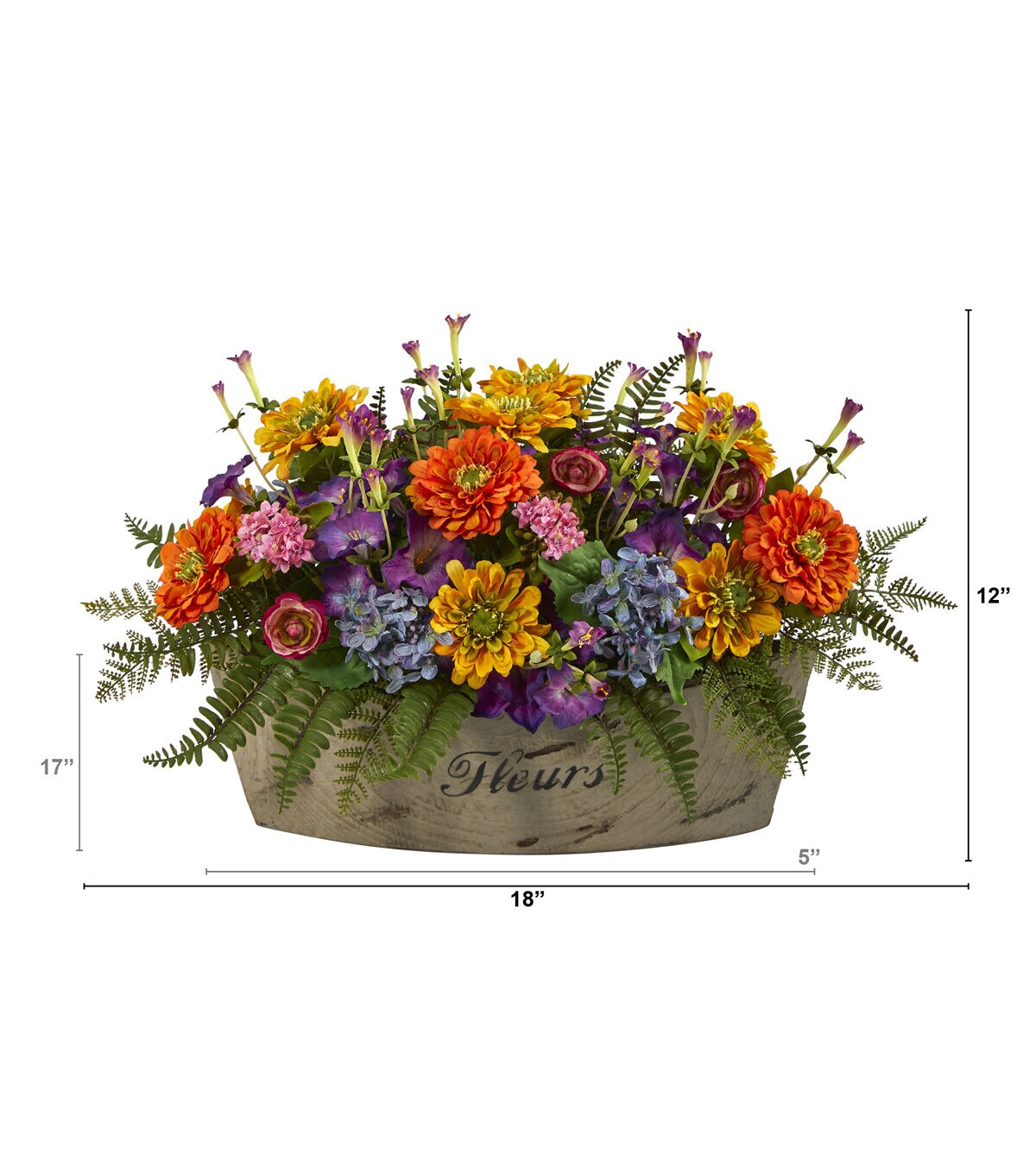 Add a pop of color to your home or office with this artificial arrangement boasting a complementary mix of vibrantly colored silk flowers, all frozen in mid-bloom and contrasted against realistic green foliage. Extends 18” from a decorative vase, this cheerful flower arrangement is perfect for brightening tight spaces. Silk arrangements are manufactured using synthetic materials, such as polyester material or plastic, and are well designed and constructed to be life-like in appearance. This item will need to be re-shaped when removed from the secure box to allow it to reach its fullest size. Your artificial arrangement will look beautiful for years to come; simply wipe clean with a soft dry cloth when needed. About Nearly Natural Inc. - For over 75 years, Nearly Natural Inc. has been providing conscientious consumers with beautiful alternatives to natural decorations. Employing and advised by naturalists who understand the live plant world, Nearly Natural is able to recreate the most realistic-looking decorative items for homes, offices, and businesses. Driven by a true commitment to customer service, attention to detail, and natural philosophy, Nearly Natural strives to bring customers the most beautiful, unique, and striking faux plants and floral on the market.