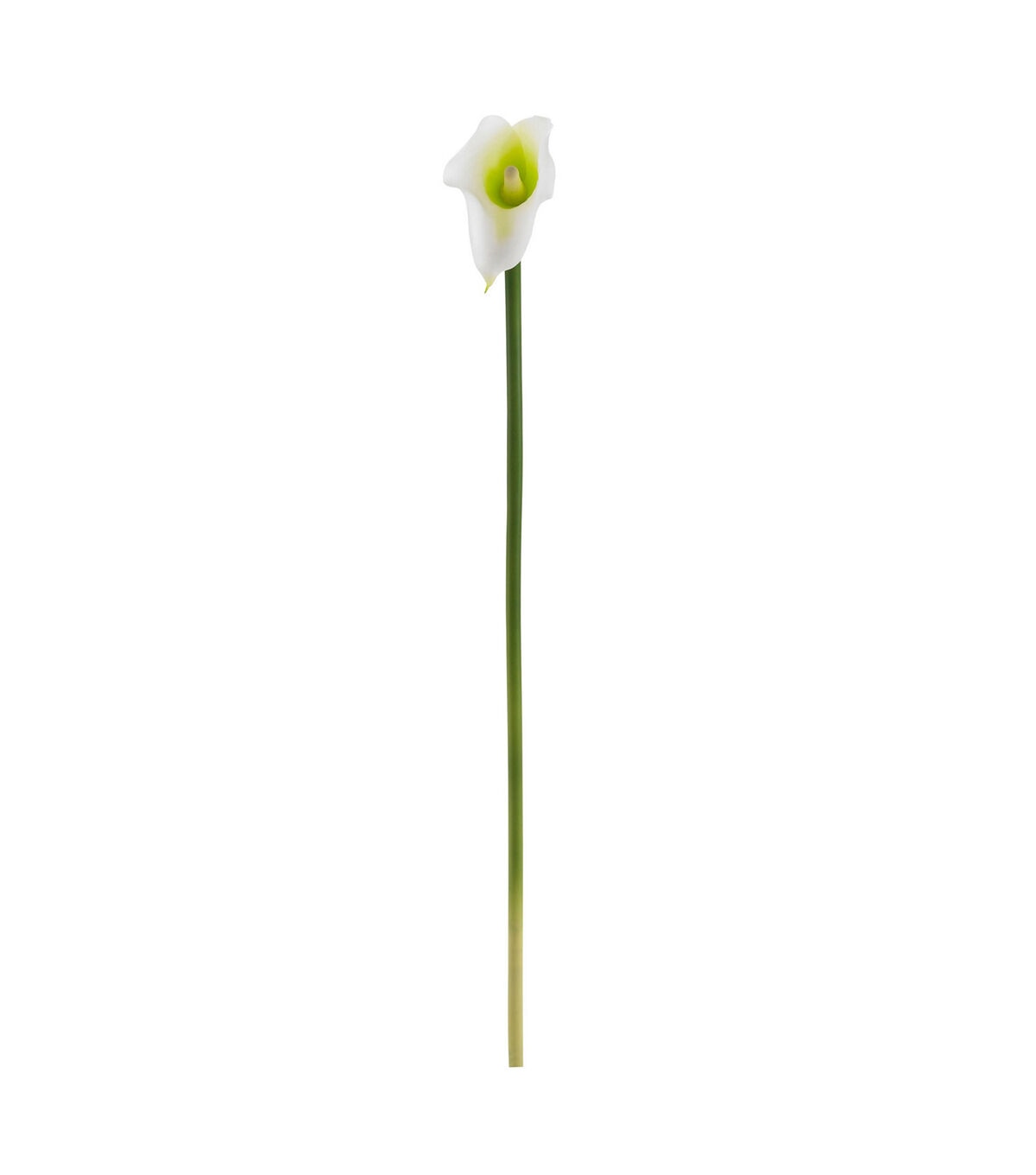 A single bloom sits on top of a thin, tall stem, making this artificial calla lily flower stand at 19.5 inches tall. Situate this set of twelve in a glass vase with natural river rocks or white stones, or arrange them amongst your favorite faux flower bouquet. Place the arrangement on your kitchen island next to your fruit for an added natural touch.