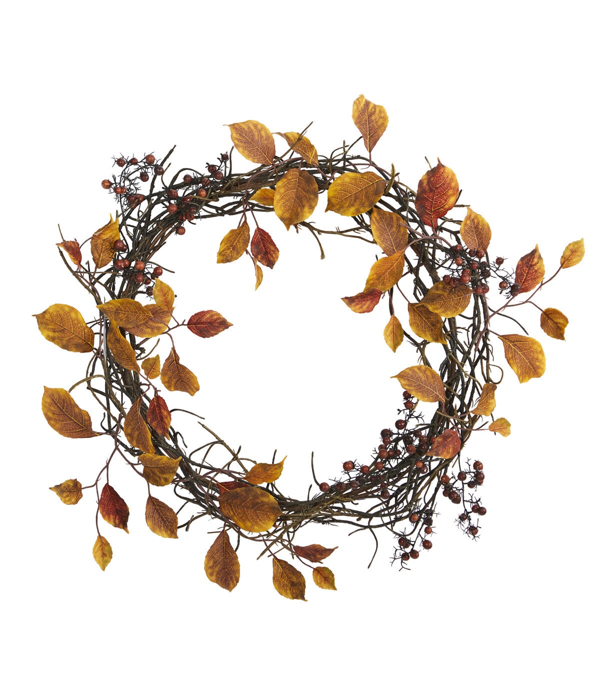 Showcase hues of the harvest with the autumn-inspired beauty provided by this colorful artificial wreath. Intricately designed with a twig base accented with various erythrina leaves and foliage, it comes complemented with sprays of faux berries that look incredibly lifelike. Perfect for sprucing up a bare wall or an empty doorway, this 19” (in circumference) decorative wreath would undoubtedly make a handsome holiday accent wherever displayed. Silk plants are manufactured using synthetic materials, such as polyester material or plastic, and are well designed and constructed to be life-like in appearance. This item will need to be re-shaped when removed from the secure box to allow it to reach its fullest size. Your artificial plant will look beautiful for years to come; simply wipe clean with a soft dry cloth when needed.