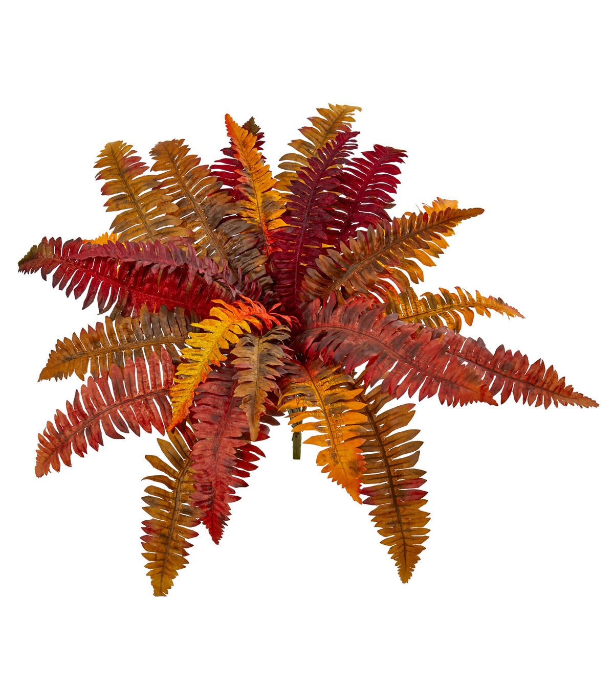 The lush, feather-like fronds of this Boston fern artificial bush gently splay outwards. While its vibrant colors: yellow, orange and red will remind you of the beautiful colors of the sunset. With a set of three included, these 20-inch pieces will look stunning in your enclosed patio or bedroom. Bundle them together in a tall vase and position it beside your sofa on a side table opposite a floor lamp for a lovely finish.