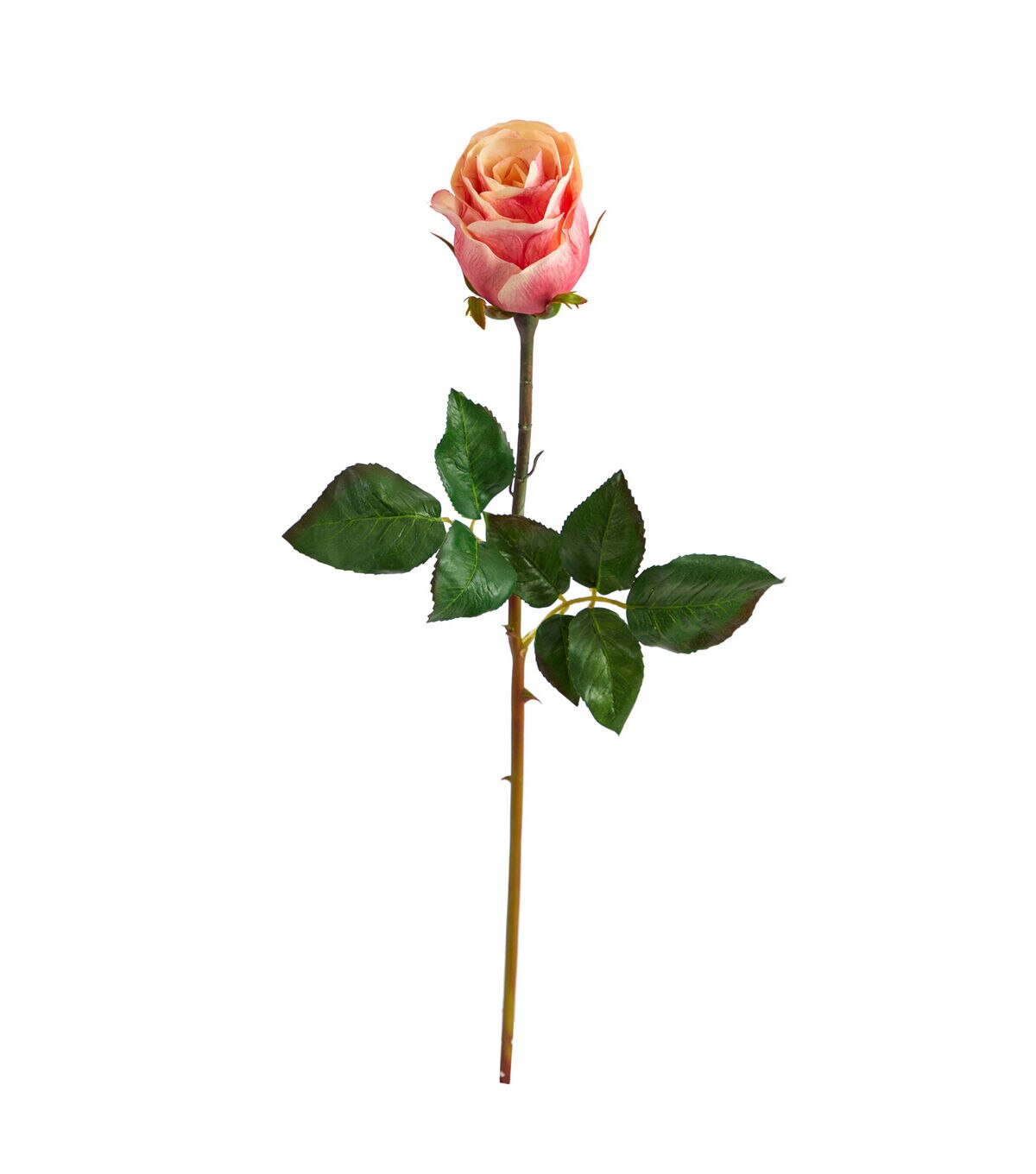 Add elegant accenting throughout your living spaces with this set of artificial rose stems featuring a single blossom with intricate petals, frozen in mid-bloom on a 21” stem. Available in a set of six, they’re great for displaying in tight spaces that could use a touch of nature’s beauty.Artifiical stems are manufactured using synthetic materials, such as polyester material or plastic, and are well designed and constructed to be life-like in appearance. This item will need to be re-shaped when removed from the secure box to allow it to reach its fullest size. Your stems will look beautiful for years to come; simply wipe clean with a soft dry cloth when needed.