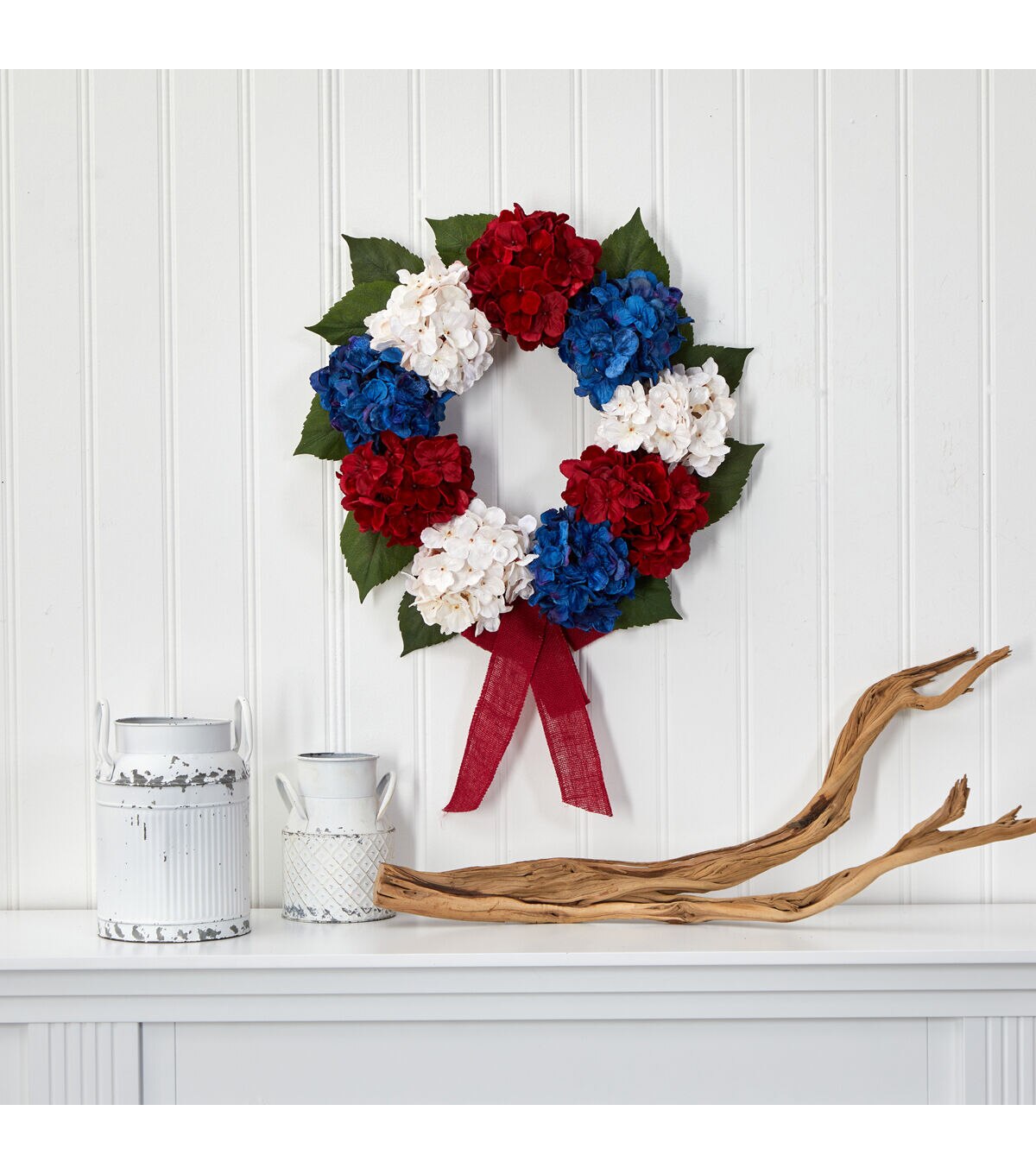 Show off your American spirit with pride this summer with this “Independence Day” inspired artificial wreath. Intricately designed from the finest materials, it showcases clusters of delicate silk hydrangea blossoms, tastefully designed in our national palette of red, white, and blue and highlighted with complementary dark foliage peeking out from underneath. Perfect for sprucing up a bare wall or an empty doorway this 4th of July, this 24” (in circumference) decorative wreath would undoubtedly make a cheerful holiday accent wherever displayed. Silk plants are manufactured using synthetic materials, such as polyester material or plastic, and are well designed and constructed to be life-like in appearance. This item will need to be re-shaped when removed from the secure box to allow it to reach its fullest size. Your artificial plant will look beautiful for years to come; simply wipe clean with a soft dry cloth when needed. About Nearly Natural Inc. - For over 75 years, Nearly Natural Inc. has been providing conscientious consumers with beautiful alternatives to natural decorations. Employing and advised by naturalists who understand the live plant world, Nearly Natural is able to recreate the most realistic-looking decorative items for homes, offices, and businesses. Driven by a true commitment to customer service, attention to detail, and natural philosophy, Nearly Natural strives to bring customers the most beautiful, unique, and striking faux plants and floral on the market.