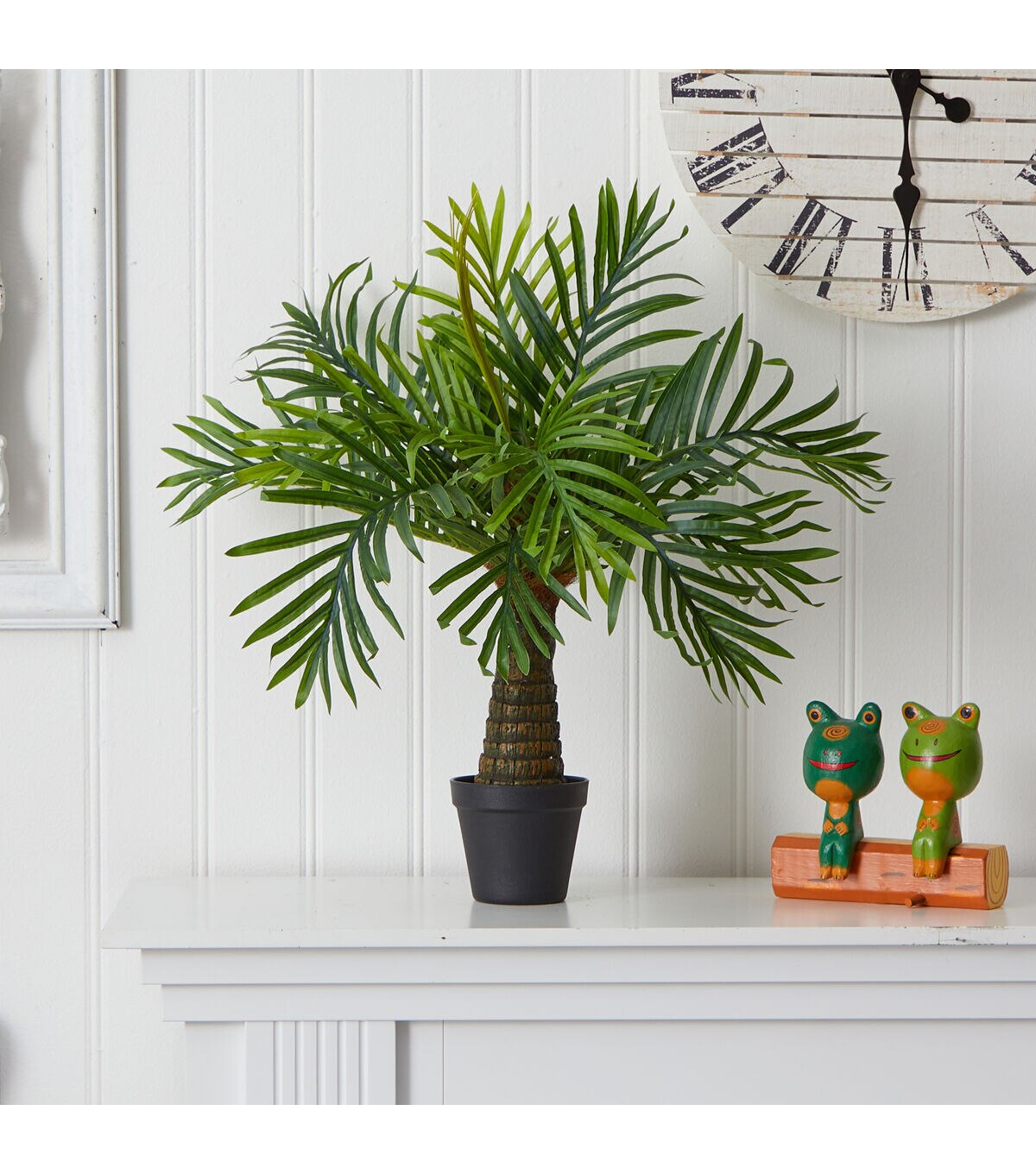 Create your own tropical paradise with this artificial robellini palm tree showcasing several realistic fronds composed of lifelike looking leaves in bright green hues. Complementary to bohemian-inspired decor, this 26” tall silk tree will provide freshness wherever displayed. About Nearly Natural Inc. - For over 75 years, Nearly Natural Inc. has been providing conscientious consumers with beautiful alternatives to natural decorations. Employed and advised by naturalists who understand the live plant world, Nearly Natural is able to recreate the most realistic-looking decorative items for homes, offices, and businesses. Driven by a true commitment to customer service, attention to detail, and natural philosophy, Nearly Natural strives to bring customers the most beautiful, unique, and striking faux plants and floral on the market.