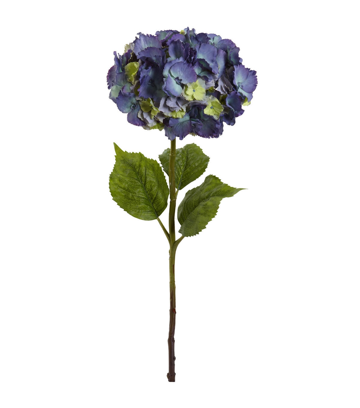 Full blooms come together in a plush head of flowers to form this gorgeous hydrangea artificial flower. These stems have been carefully crafted for a lifelike appearance, and feature realistic leaves. These 28-inch stems can be clustered together in a vase with your favorite faux ferns for a complete floral arrangement. Arrives in a set of 3 hydrangea flowers.