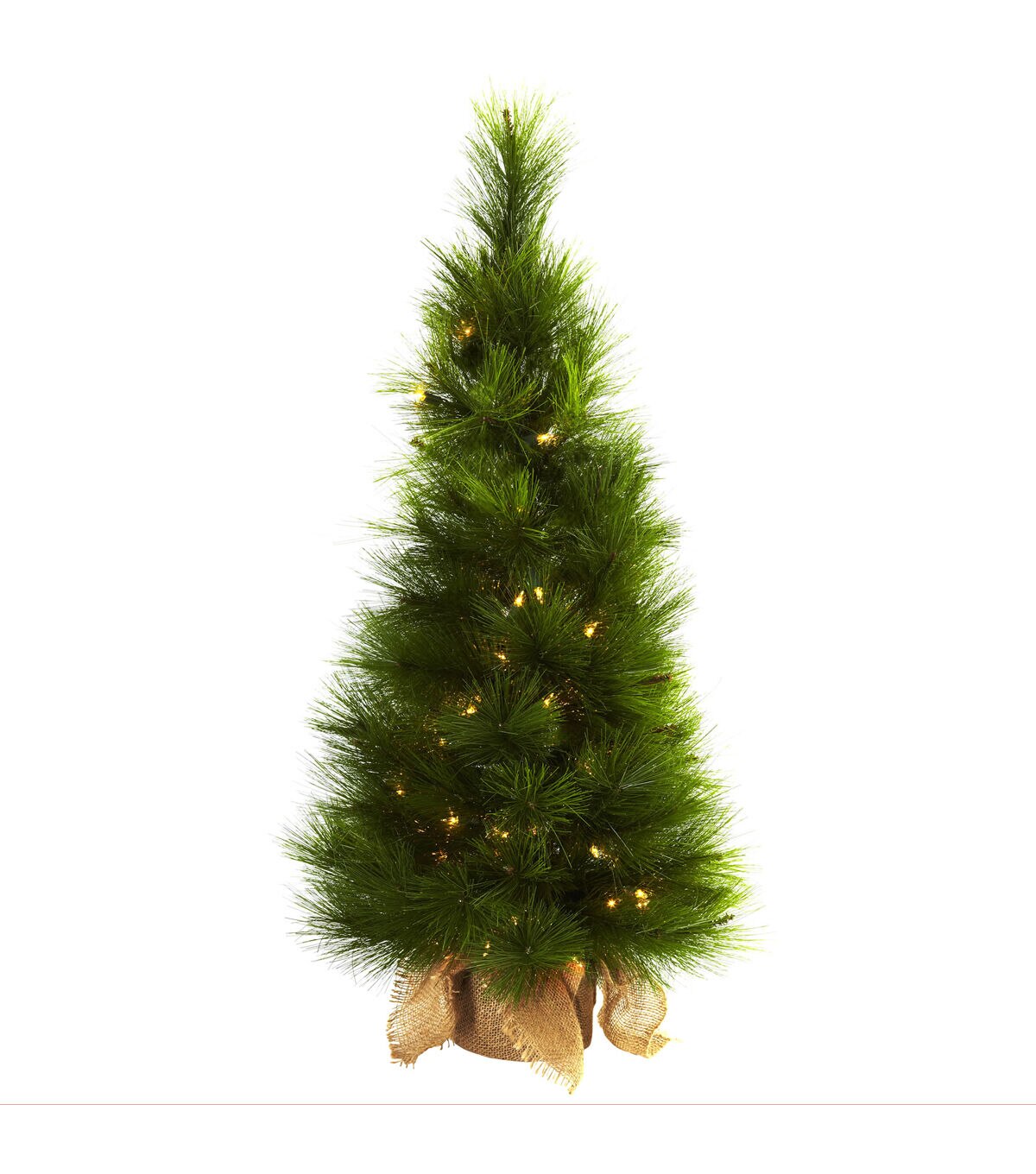 The ideal holiday decoration is "in the bag". Literally, too - this pretty 3 foot tall Christmas tree's base comes lovingly wrapped in an attractive burlap bag, giving it a classic look that can't be beat. With 71 tips and 50 clear lights (which stay on even if one burns out), this is an ideal home or office decoration that you'll turn to year after year. Makes a fine gift as well.