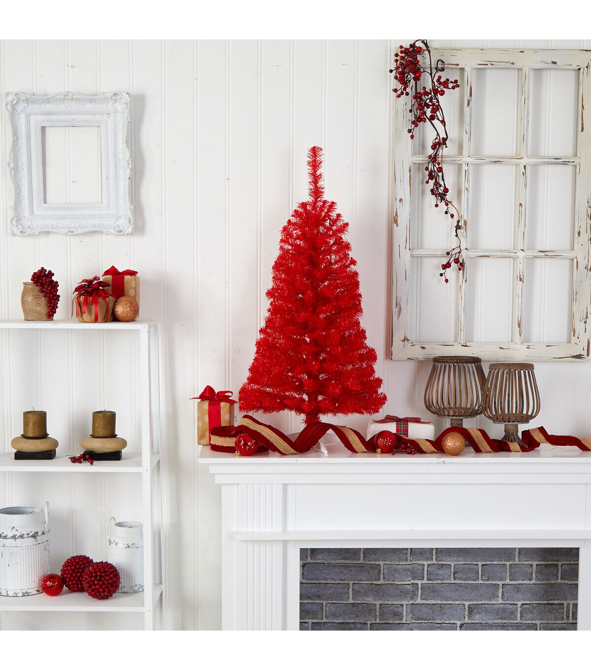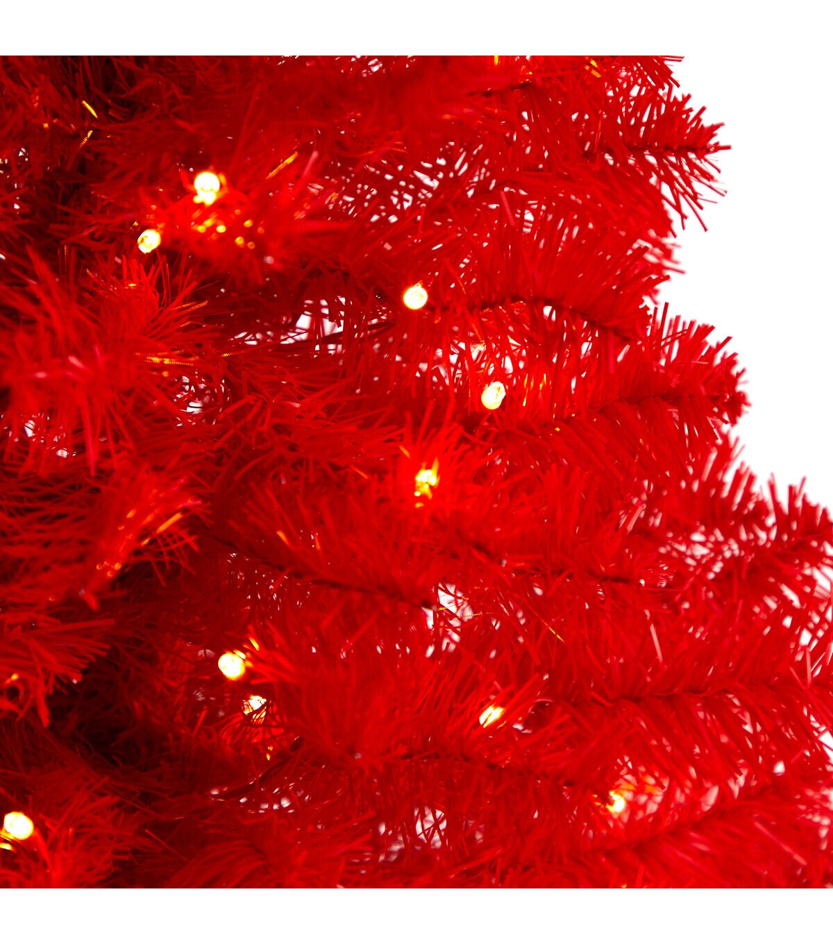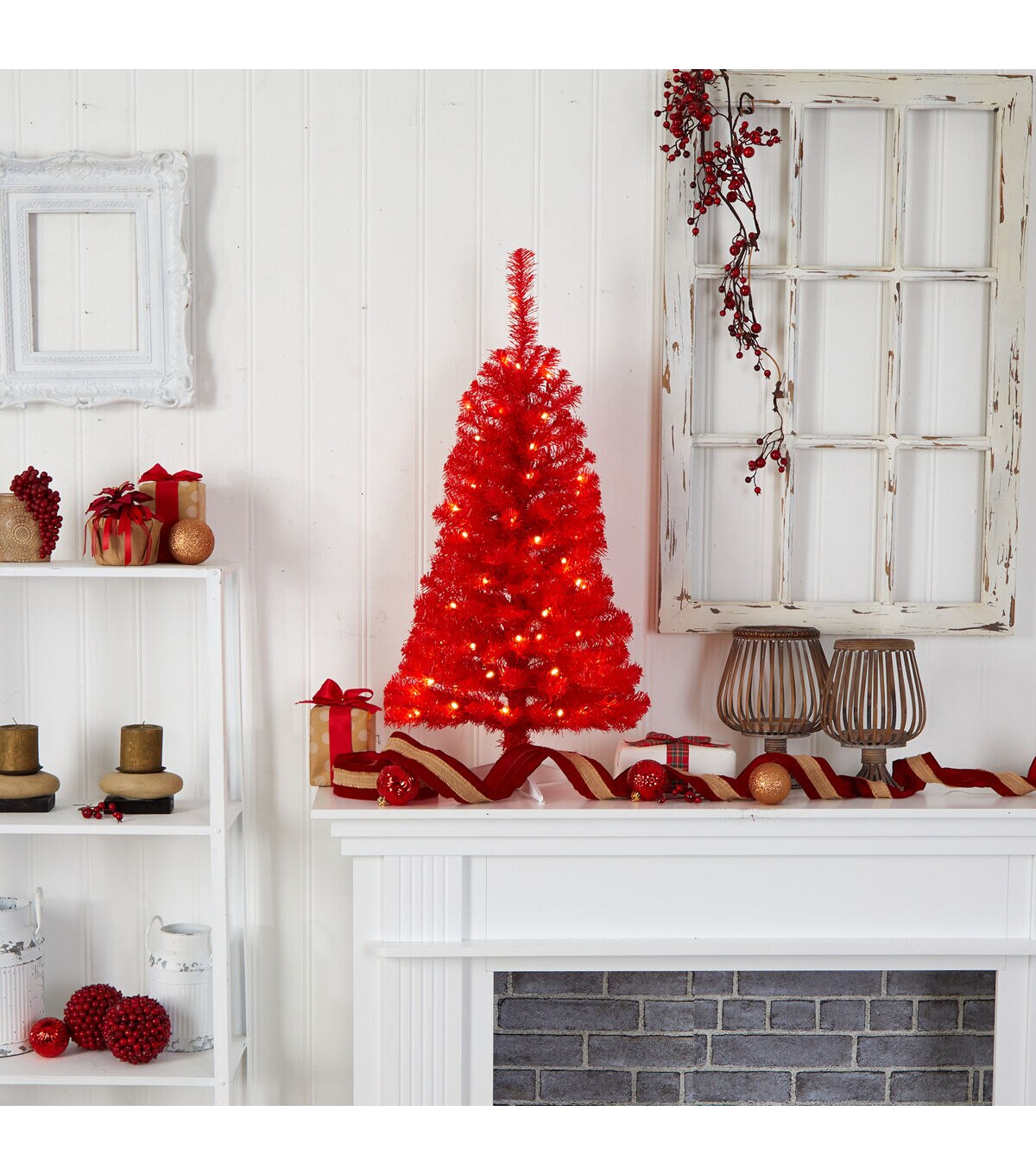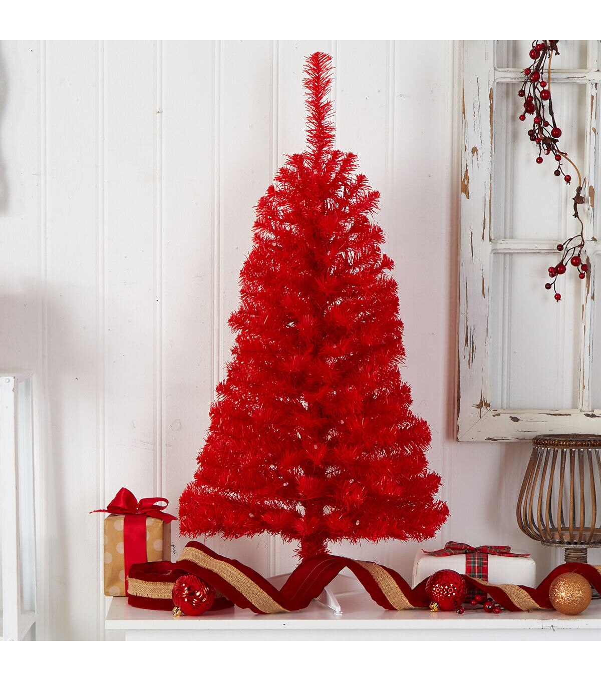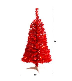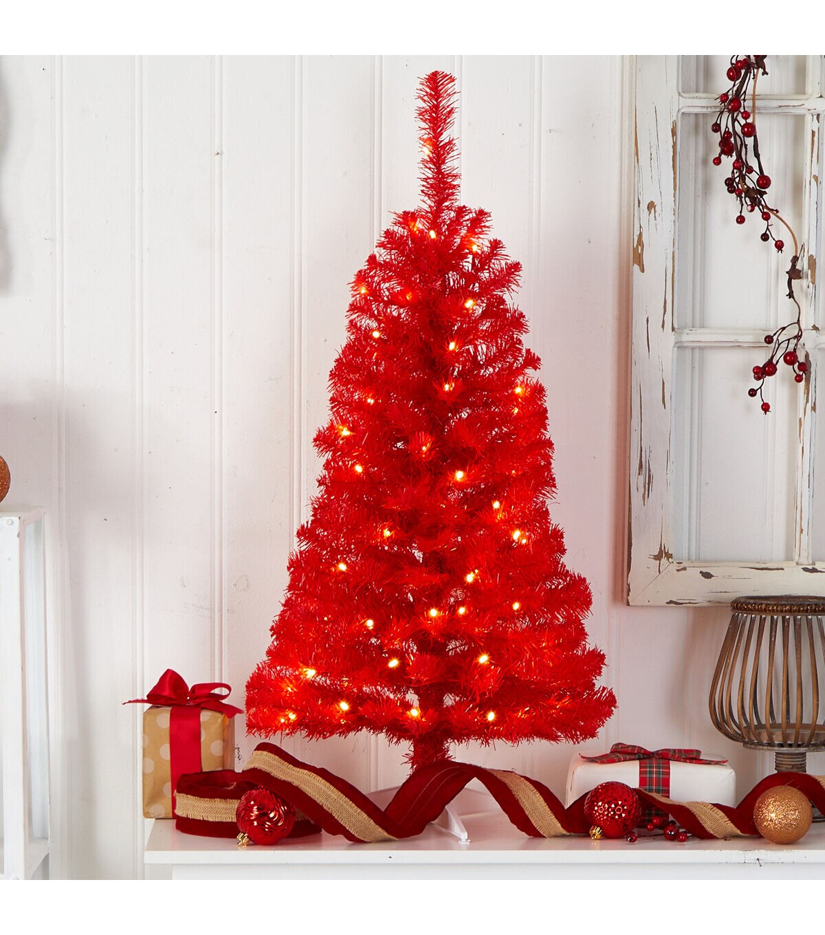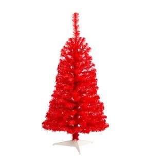 Be bold this Christmas season! Completely maintenance-free, this fun and flirty fake Christmas tree boasts an array of soft looking foliage (118 tips to accent with your holiday ornaments!), all beautifully designed in a red hue. Arriving pre-strung with 50 LED lights to eliminate tangles and stabilized on an accompanying stand, this 3ft. tall Christmas tree will not only make holiday decorating a breeze but ensure your home is always looking picture-perfect throughout the holiday season. Faux Christmas Trees are manufactured using synthetic materials, such as polyester material or plastic, and are well designed and constructed to be life-like in appearance. This item will need to be re-shaped when removed from the secure box to allow it to reach its fullest size. Your artificial Christmas Tree will look beautiful for years to come; simply wipe clean with a soft dry cloth when needed.