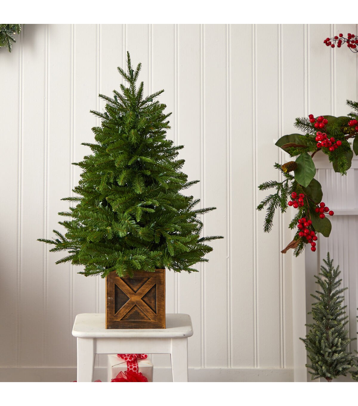 Create your own mini Christmas wonderland and rock around with this Artificial Christmas Tree. Incredibly lifelike textured branches mimic real evergreens for a sturdy construction. This pre-lit artificial Christmas tree comes with 50 clear lights and has upward-sloping branches – allowing you to decorate with mini-ornaments of your choice easily. Standing 3ft. from a decorative planter, this tree requires zero maintenance, just some fluffing and shaping that’s easy with the bendable branches! Decorate as a trio with other trees or in your kids’ room, kitchen, apartment or other compact spaces. Faux Christmas Trees are manufactured using synthetic materials, such as polyester material or plastic, and are well designed and constructed to be life-like in appearance. This item will need to be re-shaped when removed from the secure box to allow it to reach its fullest size. Your artificial Christmas Tree will look beautiful for years to come; simply wipe clean with a soft dry cloth when needed.