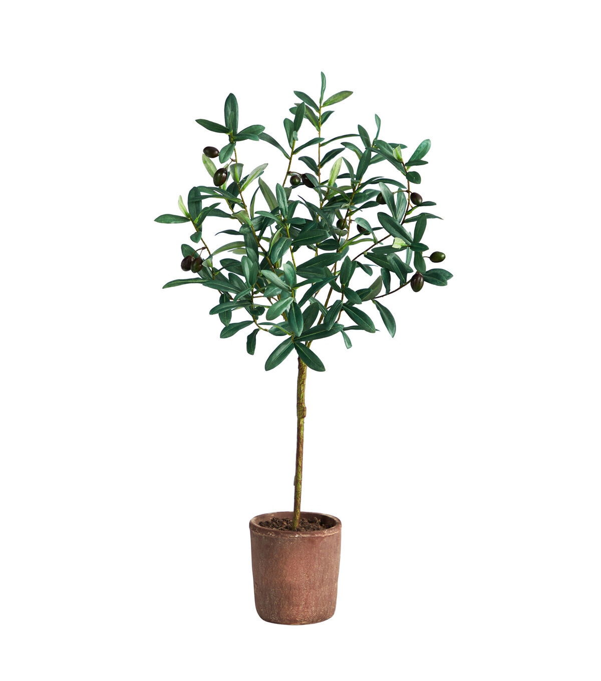 Walk through the Italian countryside with this fine and delicate Olive Artificial Tree. Featuring a thin brown trunk that splits into stems, this fake tree elegantly displays faux leaves and is accented throughout with fake olives so realistic that you’ll want to eat them. Standing at 31" from a planter (included in height), curate in compact and tight spaces like apartments, awkward corners, and bathrooms. This best-seller is perfect for minimalist, mid-century modern, boho and homes that need a delicate touch. Silk trees are manufactured using synthetic materials, such as polyester material or plastic, and are well designed and constructed to be life-like in appearance. This item will need to be re-shaped when removed from the secure box to allow it to reach its fullest size. Your artificial plant will look beautiful for years to come; simply wipe clean with a soft dry cloth when needed.
