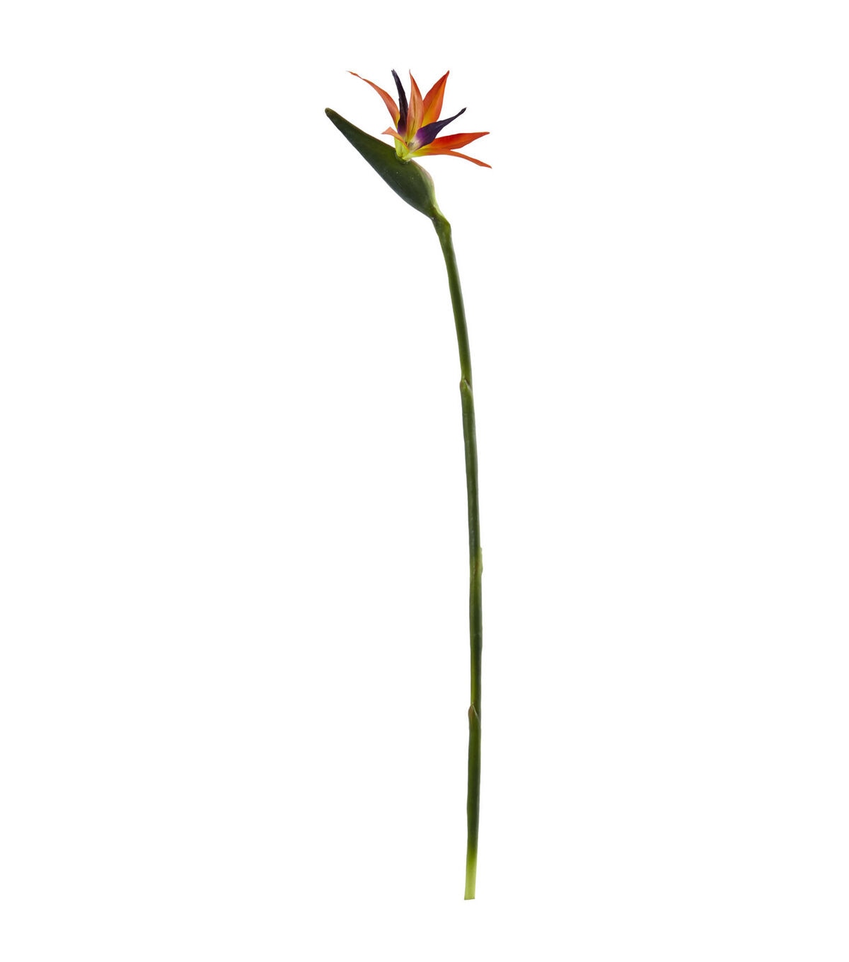 The 35 inch artificial bird of paradise will make a vibrant arrangement as it bursts with a beautiful spray of orange and purple blooms and a single foliage at the tip of its long stem. This artificial flower will add exciting colors and positive vibes to any dully decorated room. Place the set of four all together in a tall ceramic vase for a custom and lush arrangement. Settle them on a low entryway cabinet next to a picture frame or opposite a table lamp.