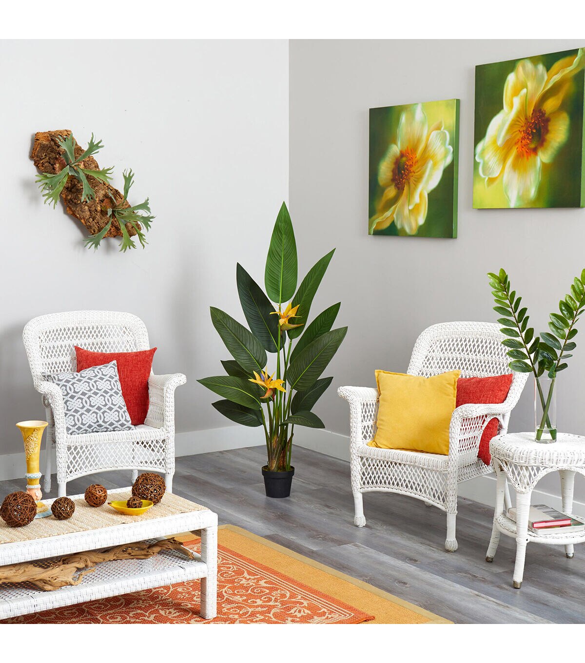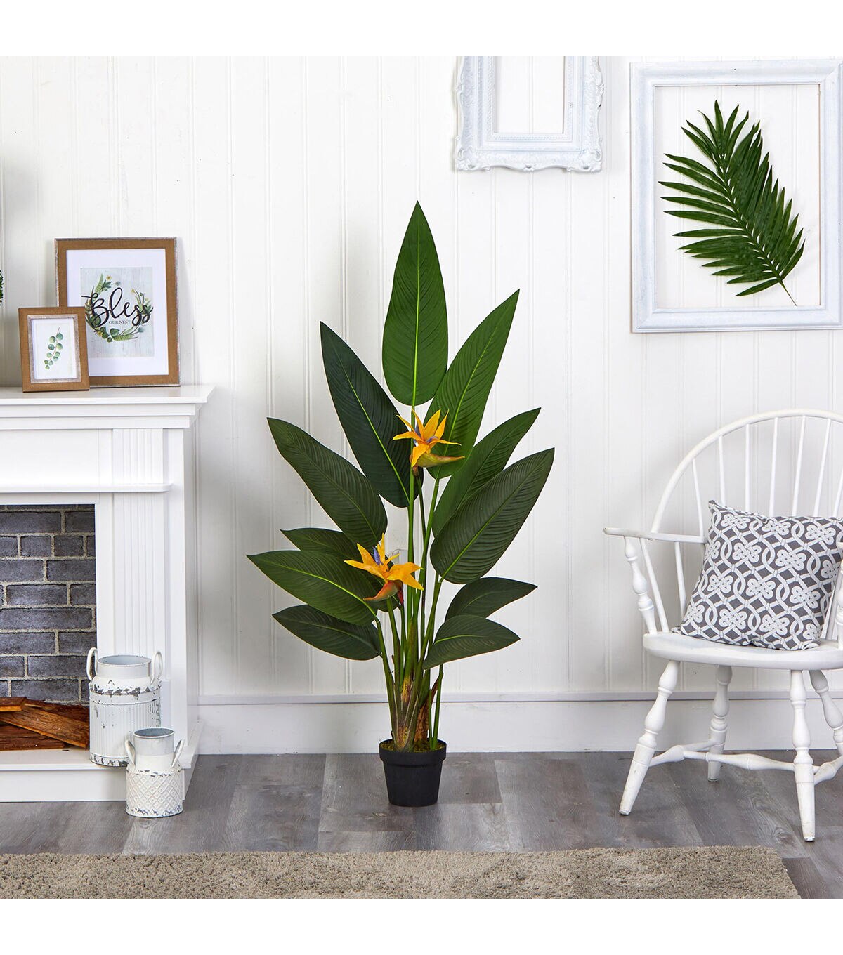 Evoke a relaxing, tropical-inspired environment all year round with the help of this artificial indoor plant; boasting vibrant evergreens that fan out with a lifelike quality and highlighted with brightly colored bird of paradise blossoms, it's all intricately designed from the finest materials to convey a lifelike appearance and to feel real to the touch. Reaching 4.5’ high and carefully stabilized in an accompanying nursery planter, this artificial bird of paradise plant would easily elevate a bare space in a home or office. Silk plants are manufactured using synthetic materials, such as polyester material or plastic, and are well designed and constructed to be life-like in appearance. This item will need to be re-shaped when removed from the secure box to allow it to reach its fullest size. Your artificial plant will look beautiful for years to come; simply wipe clean with a soft dry cloth when needed. About Nearly Natural Inc. - For over 75 years, Nearly Natural Inc. has been providing conscientious consumers with beautiful alternatives to natural decorations. Employing and advised by naturalists who understand the live plant world, Nearly Natural is able to recreate the most realistic-looking decorative items for homes, offices, and businesses. Driven by a true commitment to customer service, attention to detail, and natural philosophy, Nearly Natural strives to bring customers the most beautiful, unique, and striking faux plants and floral on the market.