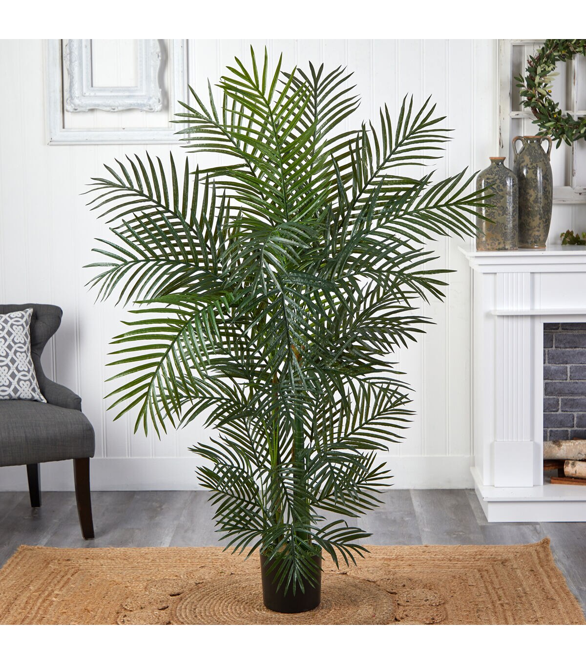 Get your swimsuit and the sunscreen ready, because you're about to go to the beach. At least it'll feel that way when you display this beautiful Areca palm tree. Standing more than 4 feet in height, it has 8 trunks and more than 800 leaves, ready to dance in the ocean breeze, whether that breeze is in your home, office, or back patio. Fully UV resistant, this indoor / outdoor piece will make the perfect statement in just about any space, and makes a fine gift.