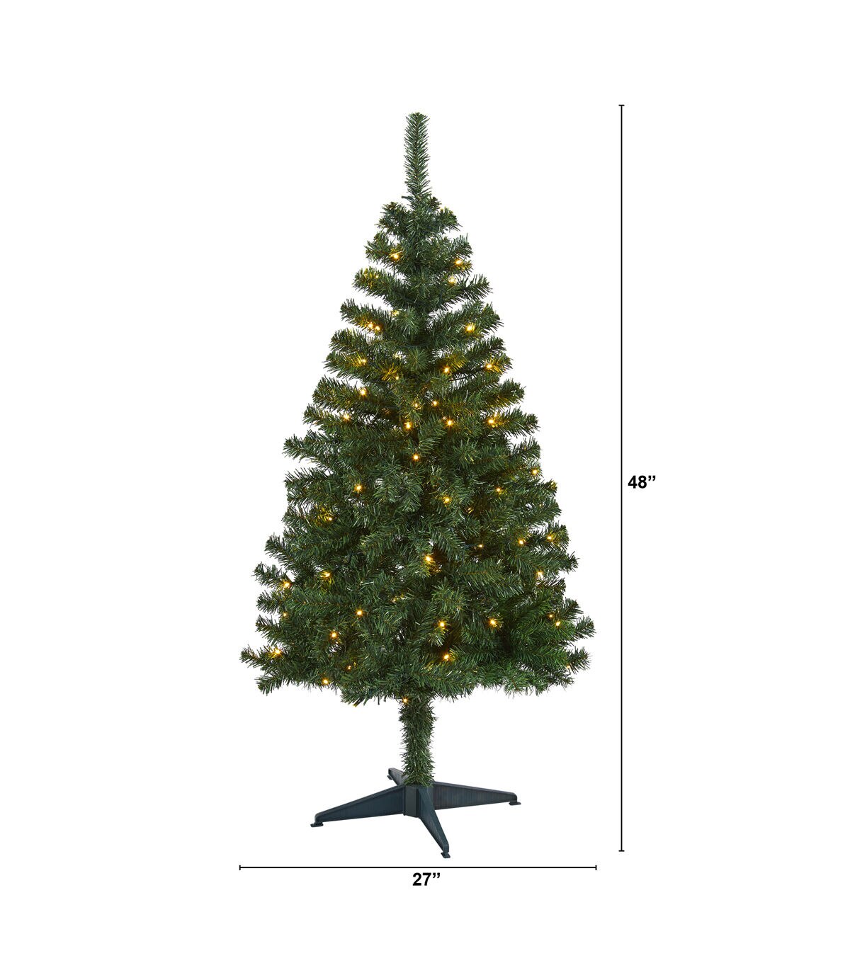 - Overall Product Dimensions: 27in. L x 27in. W x 48in. H ; Measurements are from the bottom of the tree to the furthest extended branch. Width dimensions are also calculated from the furthest outstretched dimension.