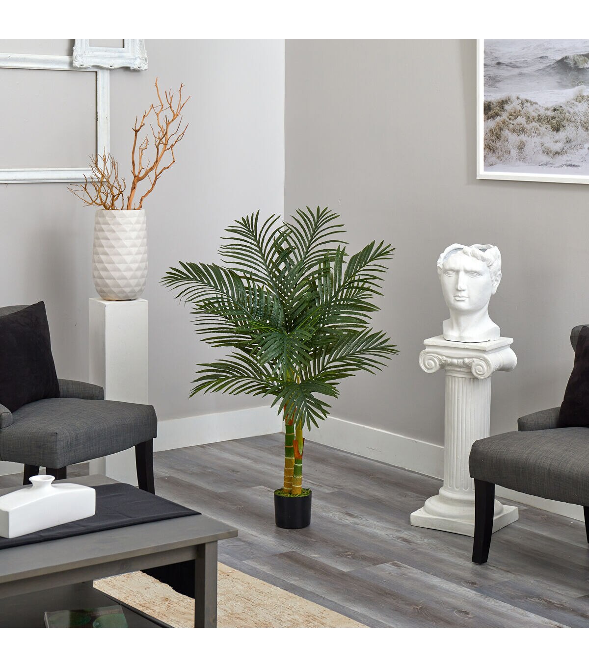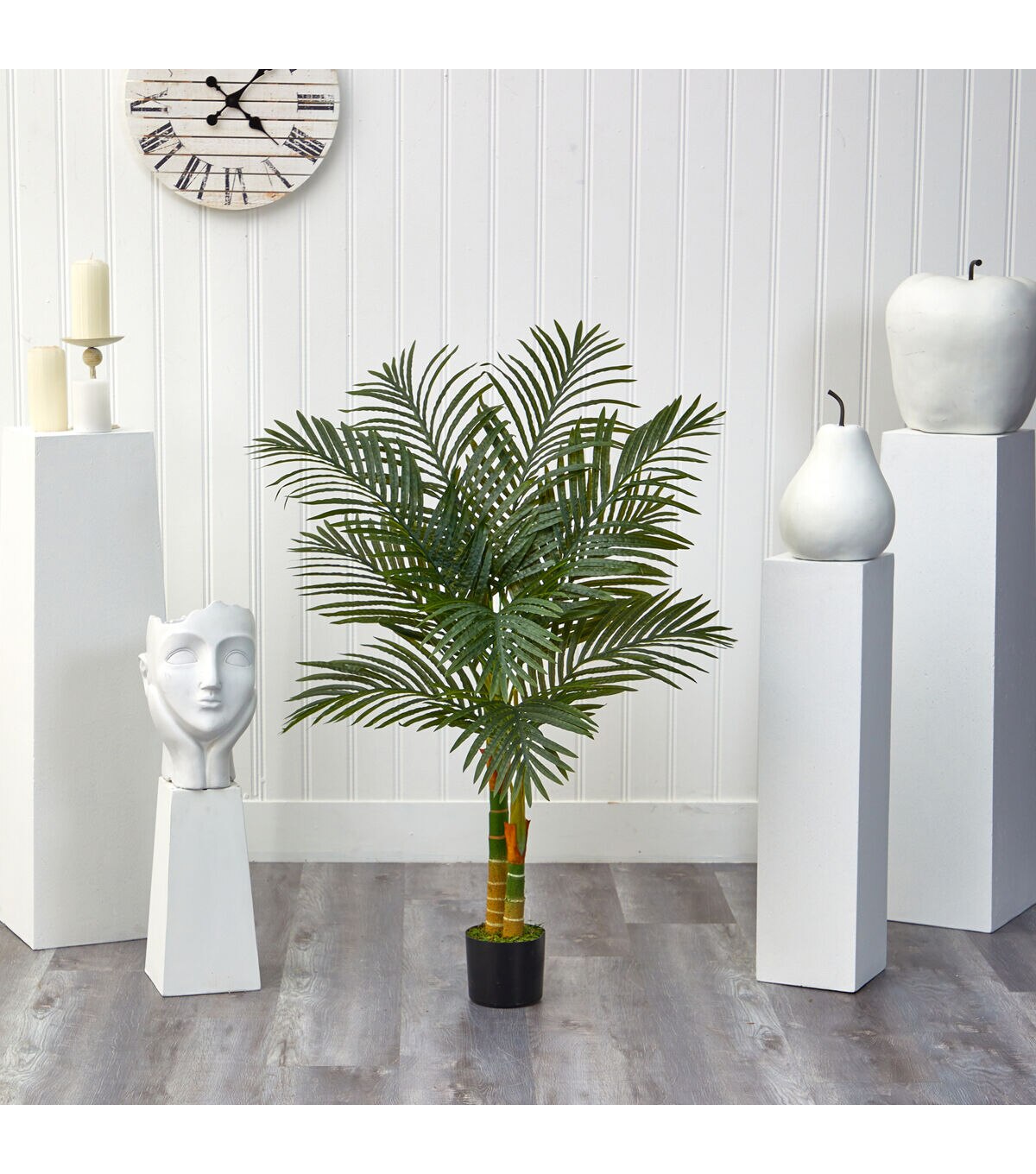 Picture your perfect summer vacation: Where you sun-soak on a hammock, feel the sea breeze hitting your face while sipping on a coconut. Luckily you can now tropic like its hot with this Golden Cane Artificial Palm Tree. It features lush, green leaves and gorgeous golden palm fronds stemming from a bamboo-like trunk with yellow hues. Standing a tall 4’ from a black planter, recreate island life in your sunroom, office (we promise smiling co-workers), or compact spaces. Do you want to feel the sea breeze with this tree?Silk trees are manufactured using synthetic materials, such as polyester material or plastic, and are well designed and constructed to be life-like in appearance. This item will need to be re-shaped when removed from the secure box to allow it to reach its fullest size. Your artificial plant will look beautiful for years to come; simply wipe clean with a soft dry cloth when needed. About Nearly Natural Inc. - For over 75 years, Nearly Natural Inc. has been providing conscientious consumers with beautiful alternatives to natural decorations. Employing and advised by naturalists who understand the live plant world, Nearly Natural is able to recreate the most realistic-looking decorative items for homes, offices, and businesses. Driven by a true commitment to customer service, attention to detail, and natural philosophy, Nearly Natural strives to bring customers the most beautiful, unique, and striking faux plants and floral on the market.