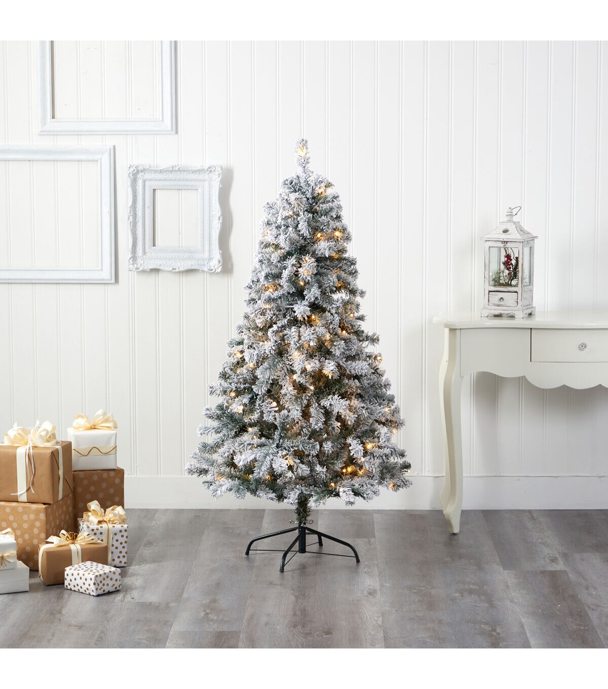 Evoke a winter wonderland this season with the help of this Flocked Rock Springs Spruce Artificial Christmas Tree. Easy to set-up and entirely maintenance-free, this winter-inspired Christmas tree boasts a rich collection of realistic looking foliage consisting of 350 easy-to-bend branches for showcasing your own personalized ornaments and holiday accents - all lightly frosted with faux snow, creating a picturesque Christmas. Arriving pre-strung with 150 clear LED lights to eliminate tangles and carefully stabilized on an accompanying stand, this versatile 5’ tall frosted artificial Christmas tree will undoubtedly transform any home or office into a joyous holiday setting for years to come. About Nearly Natural Inc. - For over 75 years, Nearly Natural Inc. has been providing conscientious consumers with beautiful alternatives to natural decorations. Employing and advised by naturalists who understand the live plant world, Nearly Natural is able to recreate the most realistic-looking decorative items for homes, offices, and businesses. Driven by a true commitment to customer service, attention to detail, and natural philosophy, Nearly Natural strives to bring customers the most beautiful, unique, and striking faux plants and floral on the market.