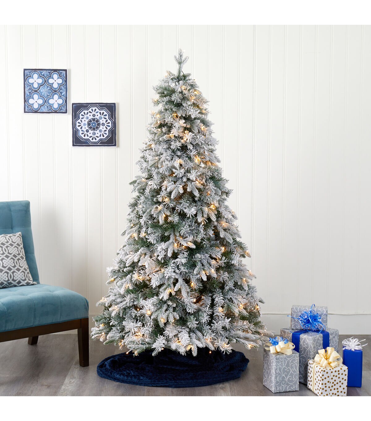 Evoke a winter wonderland this season with the help of this Flocked Vermont Mixed Pine Artificial Christmas Tree. Easy to set-up and entirely maintenance-free, this winter-inspired Christmas tree boasts a robust collection of realistic looking foliage consisting of 630 easy-to-bend branches for showcasing your own personalized ornaments and holiday accents - all lightly frosted with faux snow, creating a picturesque Christmas. Arriving pre-strung with 150 clear LED lights to eliminate tangles and carefully stabilized on a metal stand, this charming 5’ tall frosted artificial Christmas tree will undoubtedly transform any home or office into a joyous holiday setting for years to come. About Nearly Natural Inc. - For over 75 years, Nearly Natural Inc. has been providing conscientious consumers with beautiful alternatives to natural decorations. Employing and advised by naturalists who understand the live plant world, Nearly Natural is able to recreate the most realistic-looking decorative items for homes, offices, and businesses. Driven by a true commitment to customer service, attention to detail, and natural philosophy, Nearly Natural strives to bring customers the most beautiful, unique, and striking faux plants and floral on the market.