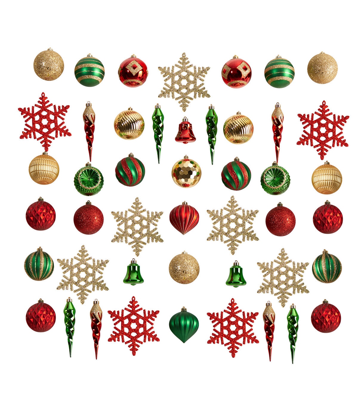 Get into the holly jolly spirit this holiday season with an easy, go-to set of shatterproof Christmas tree ornaments. Perfect for accenting and filling in bare spaces in Christmas trees, this set of 50 holiday-inspired ornaments comes in bright seasonal hues and reflects a glass-like quality - without the fear of damage should they fall or drop. Arriving in a reusable tray for continual seasonal use and storage, they’re perfect for mixing and matching with other similar colors and themes. Note, some of them come with glitter for a dazzling look, perfect for any Christmas tree.
