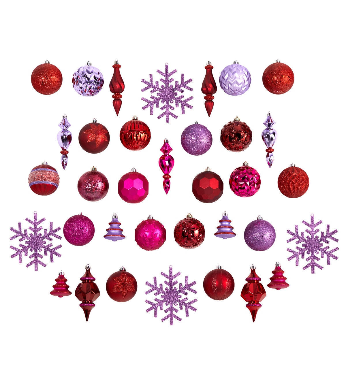 Get into the holly jolly spirit this holiday season with an easy, go-to set of shatterproof Christmas tree ornaments. Perfect for accenting and filling in bare spaces in Christmas trees, this set of 50 holiday-inspired ornaments comes in bright seasonal hues and reflects a glass-like quality - without the fear of damage should they fall or drop. Arriving in a reusable tray for continual seasonal use and storage, they’re perfect for mixing and matching with other similar colors and themes. Note, some of them come with glitter for a dazzling look, perfect for any Christmas tree.