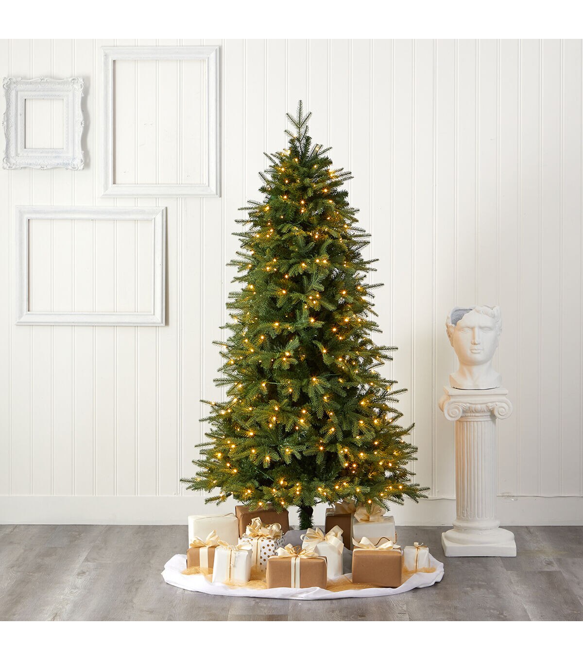 Evoke hints of a traditional Christmas setting with the help of this natural looking artificial Christmas tree. Intricately designed to showcase an all-natural look in appearance, its robust silhouette is made up of 1870 easy-to-bend branch tips, perfect for showcasing all your favorite holiday ornaments. Arriving pre-strung with 350 clear LED lights to eliminate unsightly tangles and carefully stabilized on a metal stand, this 6’ artificial Christmas tree will undoubtedly be a great addition to holiday decor - year after year. About Nearly Natural Inc. - For over 75 years, Nearly Natural Inc. has been providing conscientious consumers with beautiful alternatives to natural decorations. Employing and advised by naturalists who understand the live plant world, Nearly Natural is able to recreate the most realistic-looking decorative items for homes, offices, and businesses. Driven by a true commitment to customer service, attention to detail, and natural philosophy, Nearly Natural strives to bring customers the most beautiful, unique, and striking faux plants and floral on the market.
