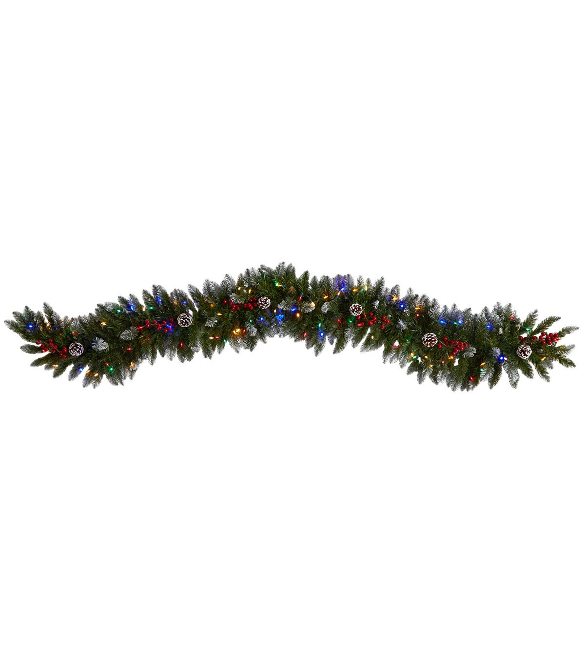 Complete your own winter-inspired wonderland this holiday with the help of this artificial winter garland, intricately designed from realistic looking evergreens with 160 branches for easy styling. This faux garland also comes with 100 LED lights. Great for showcasing over a mantle, bare counter, or stair banister, this impressive 6ft. long artificial garland will undoubtedly complete a traditional holiday setting for years to come. Artificial garlands are manufactured using synthetic materials, such as polyester material or plastic, and are well designed and constructed to be life-like in appearance. This item will need to be re-shaped when removed from the secure box to allow it to reach its fullest size. Your plant will look beautiful for years to come; simply wipe clean with a soft dry cloth when needed.