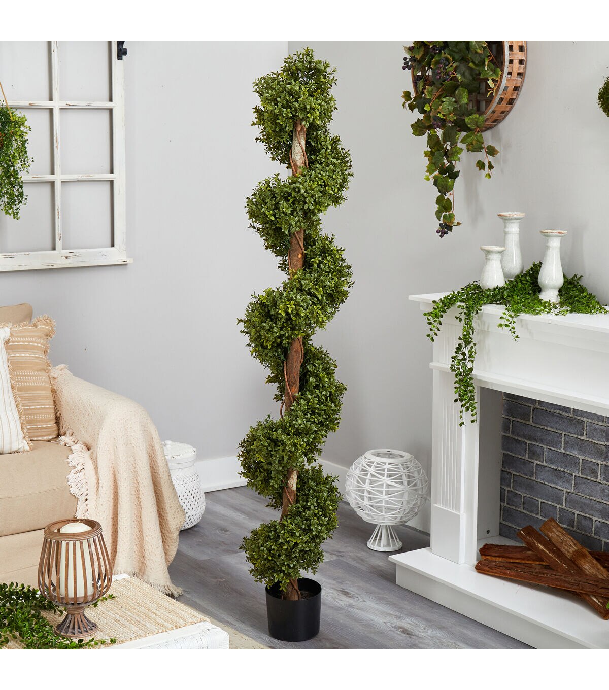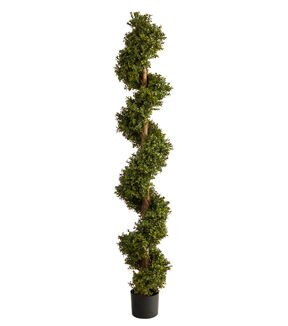Whirl around this whimsical Artificial Boxwood Topiary Spiral Tree. Exotic to the eye, bring posh, jungle vibes with the twirling greens adorning a trunk like silhouette that delivers a subtle, yet rustic look. Standing 6’ from a black planter (included in height), curate in rooms that need a little green. Perfect for compact spaces like living rooms, hallways, apartments, or awkward corners. Pair in multiples for cohesion.Silk trees are manufactured using synthetic materials, such as polyester material or plastic, and are well designed and constructed to be life-like in appearance. This item will need to be re-shaped when removed from the secure box to allow it to reach its fullest size. Your artificial plant will look beautiful for years to come; simply wipe clean with a soft dry cloth when needed. About Nearly Natural Inc. - For over 75 years, Nearly Natural Inc. has been providing conscientious consumers with beautiful alternatives to natural decorations. Employing and advised by naturalists who understand the live plant world, Nearly Natural is able to recreate the most realistic-looking decorative items for homes, offices, and businesses. Driven by a true commitment to customer service, attention to detail, and natural philosophy, Nearly Natural strives to bring customers the most beautiful, unique, and striking faux plants and floral on the market.
