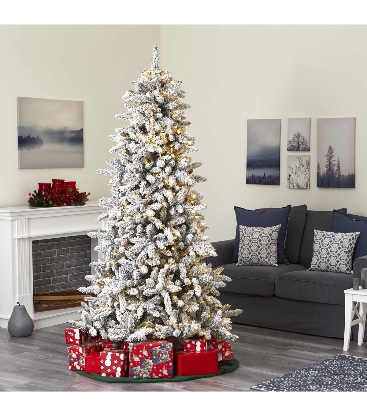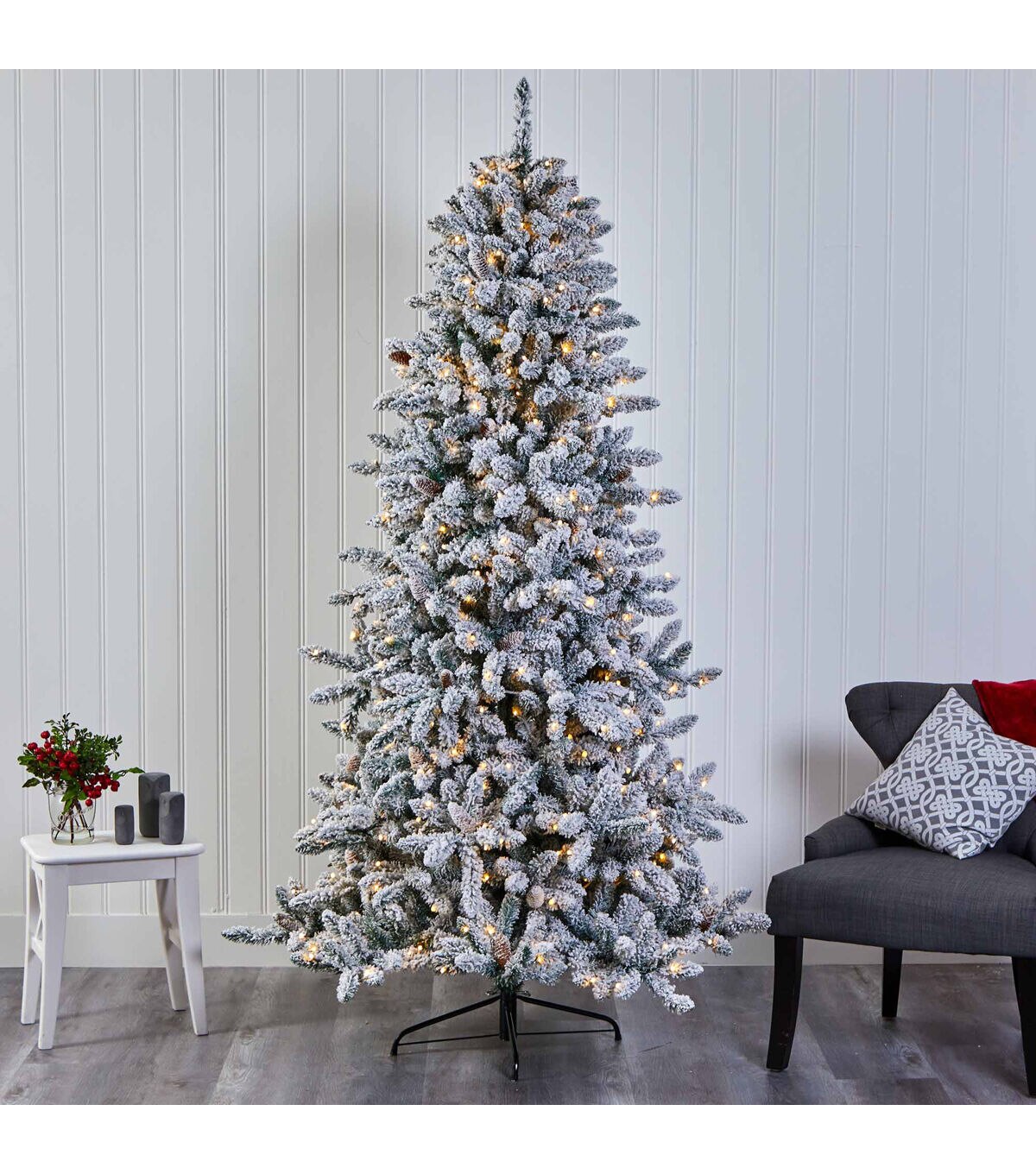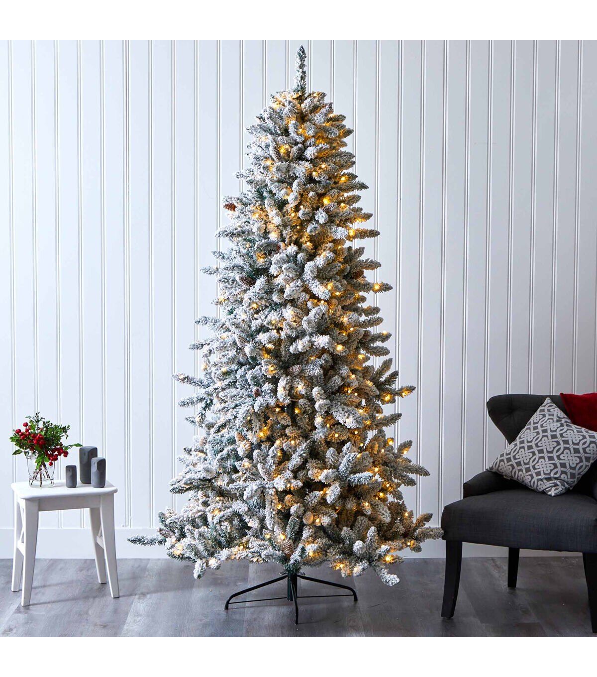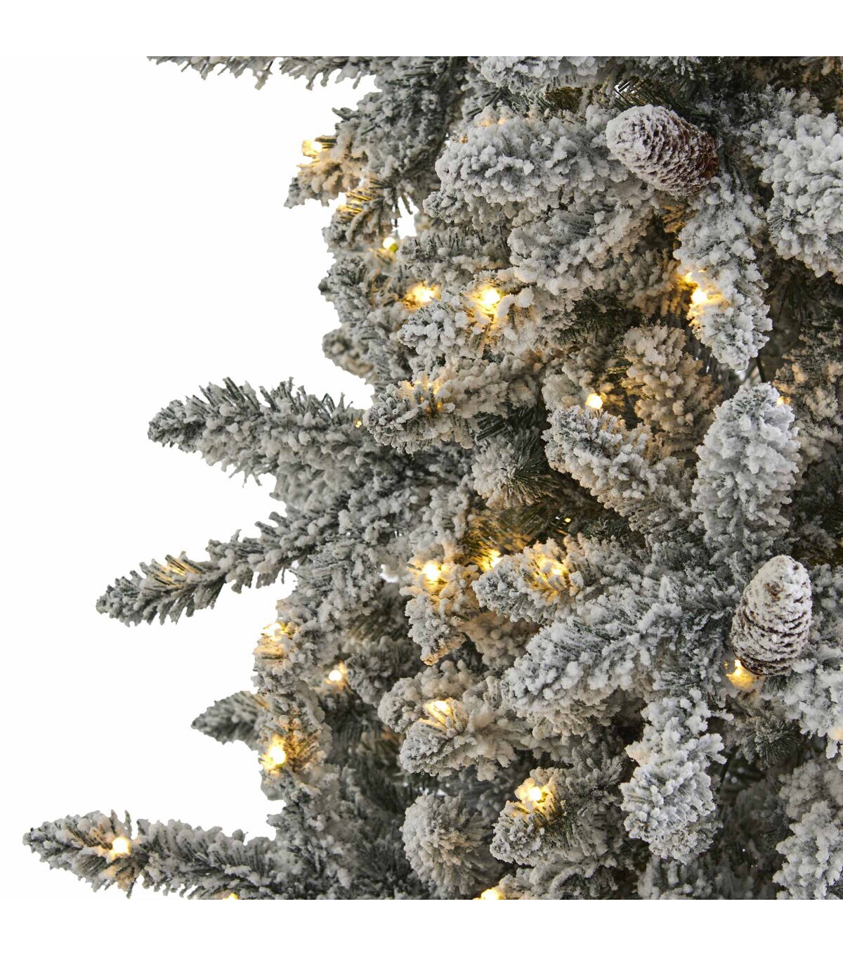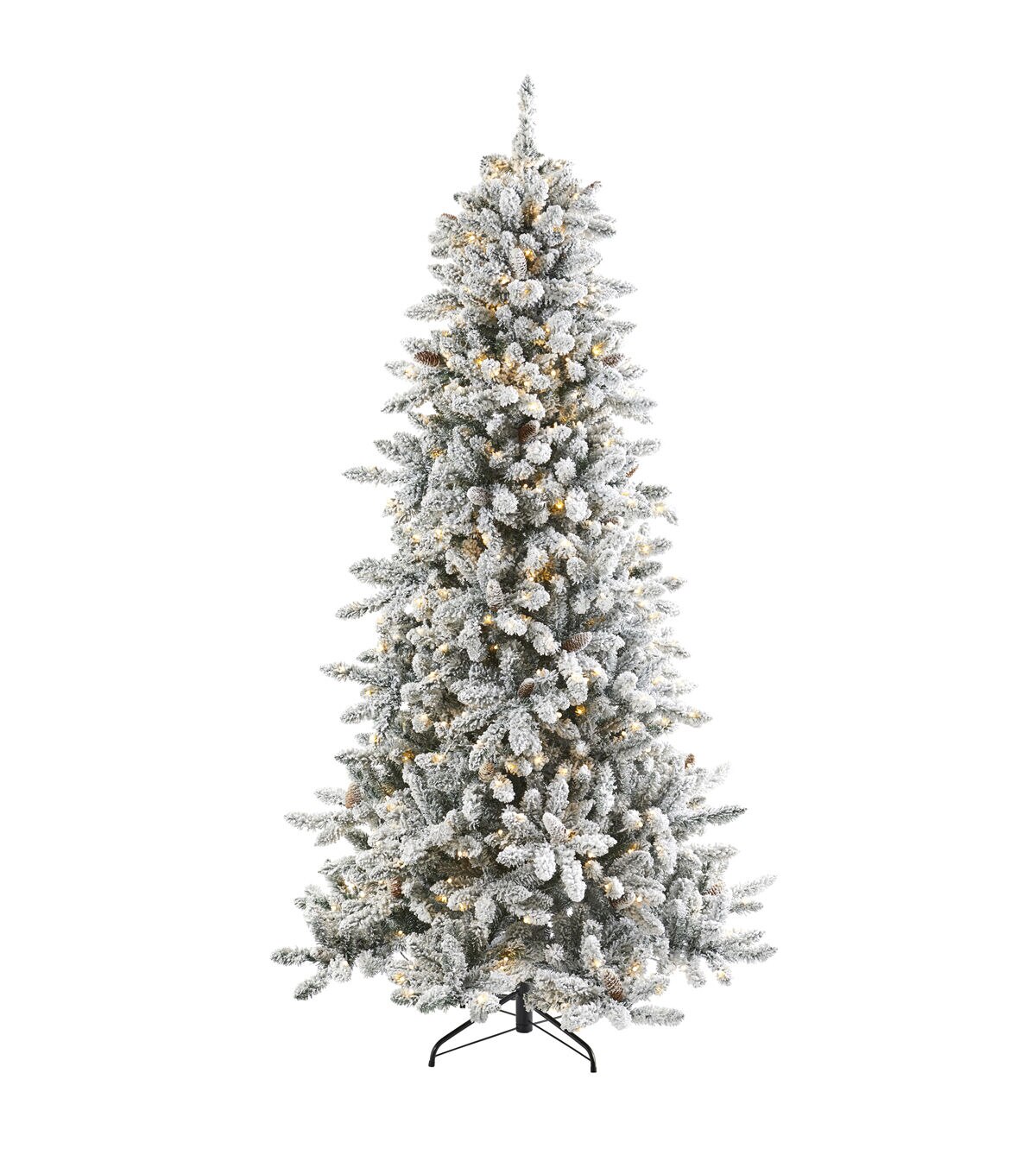 Create a true Christmas scene in your home or office with the help of this flocked artificial Christmas tree! Completely maintenance-free, this winter-inspired fake Christmas tree boasts an array of soft looking foliage (1336 tips to accent with your holiday ornaments!), all beautifully flocked in soft evergreens and handsomely accented throughout with faux pinecones. Arriving pre-strung with 500 lights to eliminate tangles and stabilized on a metal stand, this impressive 7.5’ tall Christmas tree will not only make holiday decorating a breeze but ensure your home is always looking picture-perfect throughout the holiday season. About Nearly Natural Inc. - For over 75 years, Nearly Natural Inc. has been providing conscientious consumers with beautiful alternatives to natural decorations. Employing and advised by naturalists who understand the live plant world, Nearly Natural is able to recreate the most realistic-looking decorative items for homes, offices, and businesses. Driven by a true commitment to customer service, attention to detail, and natural philosophy, Nearly Natural strives to bring customers the most beautiful, unique, and striking faux plants and floral on the market.