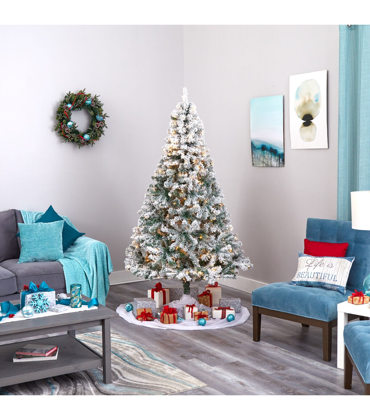 Evoke a winter wonderland this season with the help of this Flocked Rock Springs Spruce Artificial Christmas Tree. Easy to set-up and entirely maintenance-free, this winter-inspired Christmas tree boasts a rich collection of realistic looking foliage consisting of 800 easy-to-bend branches for showcasing your own personalized ornaments and holiday accents - all lightly frosted with faux snow, creating a picturesque Christmas. Arriving pre-strung with 350 clear LED lights to eliminate tangles and carefully stabilized on an accompanying stand, this impressive 7’ tall frosted artificial Christmas tree will undoubtedly transform any home or office into a joyous holiday setting for years to come. About Nearly Natural Inc. - For over 75 years, Nearly Natural Inc. has been providing conscientious consumers with beautiful alternatives to natural decorations. Employing and advised by naturalists who understand the live plant world, Nearly Natural is able to recreate the most realistic-looking decorative items for homes, offices, and businesses. Driven by a true commitment to customer service, attention to detail, and natural philosophy, Nearly Natural strives to bring customers the most beautiful, unique, and striking faux plants and floral on the market.