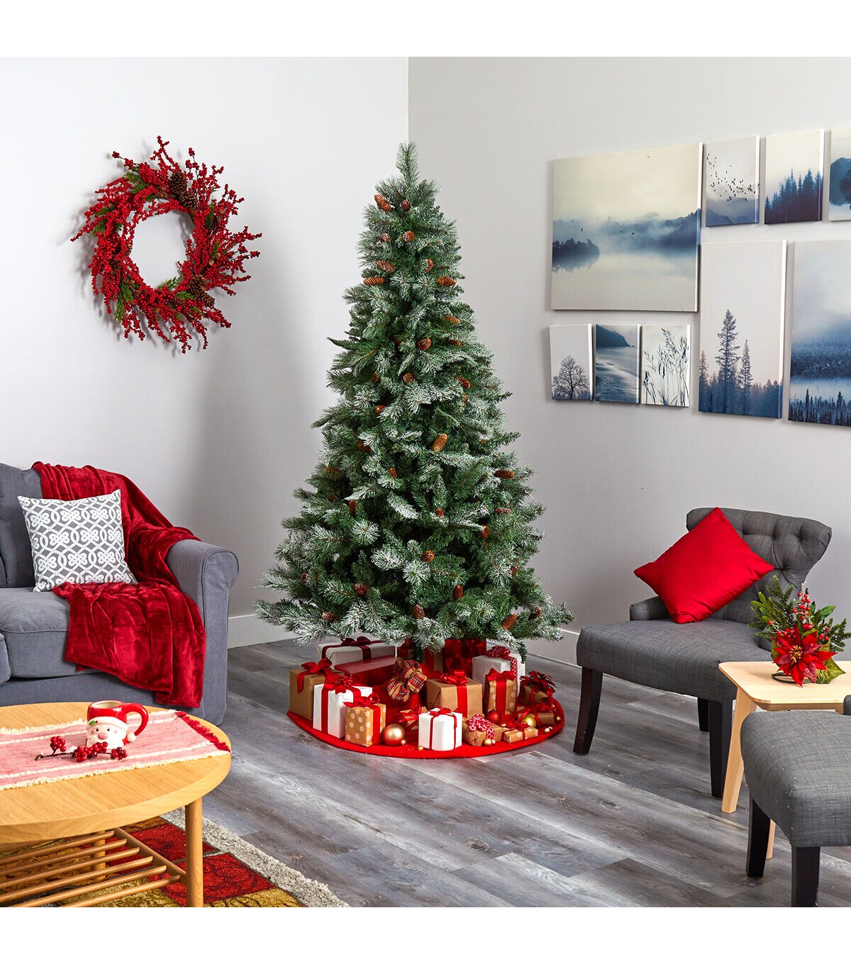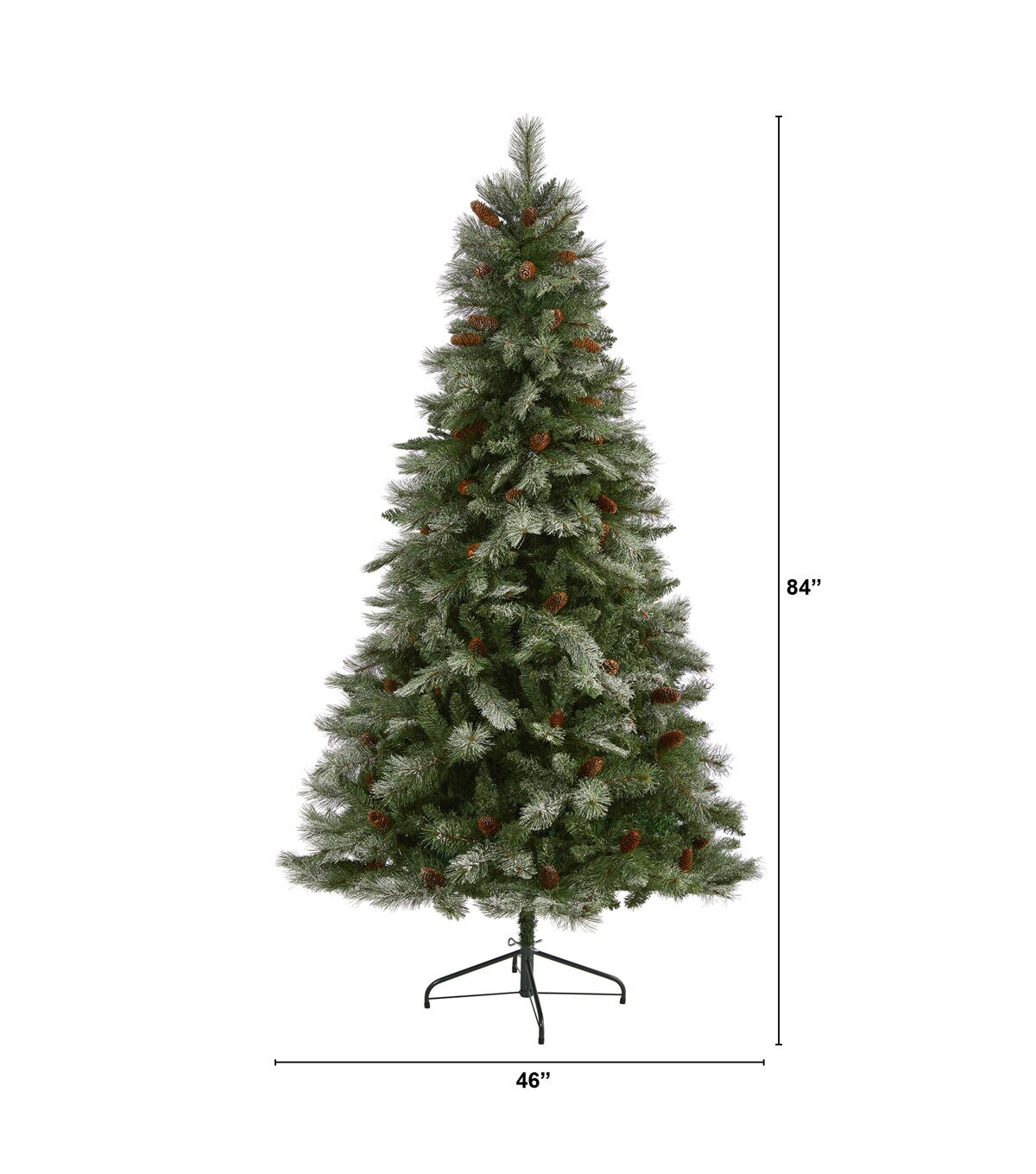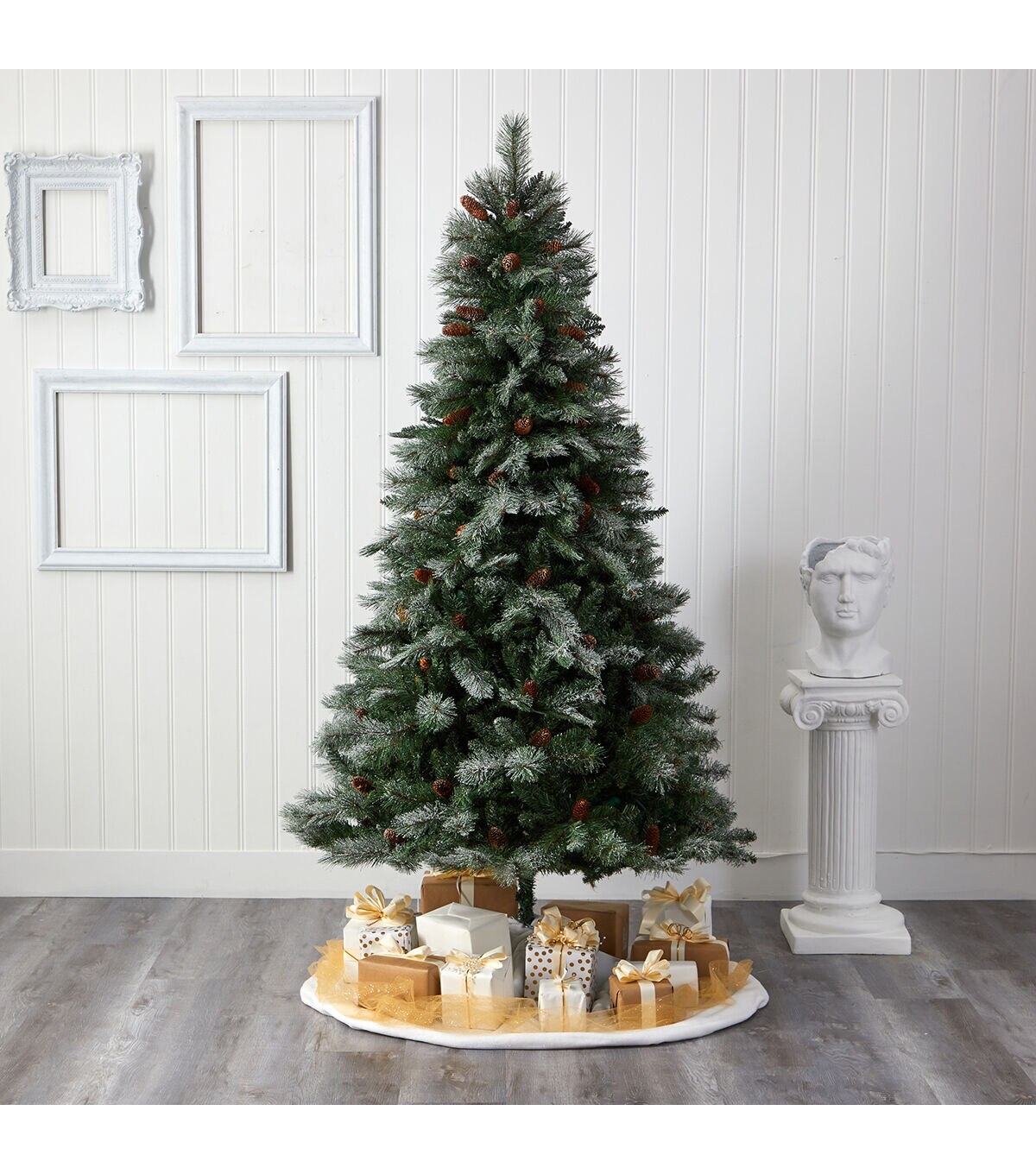 Evoke hints of a winter wonderland this holiday season with the help of this snowy artificial Christmas tree! Completely maintenance-free, this winter-inspired fake Christmas tree boasts a robust silhouette of snow-dusted foliage made up of 833 easy-to-bend branch tips for decorating with your own holiday ornaments, accented throughout with faux pinecones that look incredibly lifelike. Carefully stabilized on a metal stand, this enchanting 7’ tall snowy artificial Christmas tree will not only make holiday decorating a breeze but ensure your home is always holiday-dressed for years to come. About Nearly Natural Inc. - For over 75 years, Nearly Natural Inc. has been providing conscientious consumers with beautiful alternatives to natural decorations. Employing and advised by naturalists who understand the live plant world, Nearly Natural is able to recreate the most realistic-looking decorative items for homes, offices, and businesses. Driven by a true commitment to customer service, attention to detail, and natural philosophy, Nearly Natural strives to bring customers the most beautiful, unique, and striking faux plants and floral on the market.