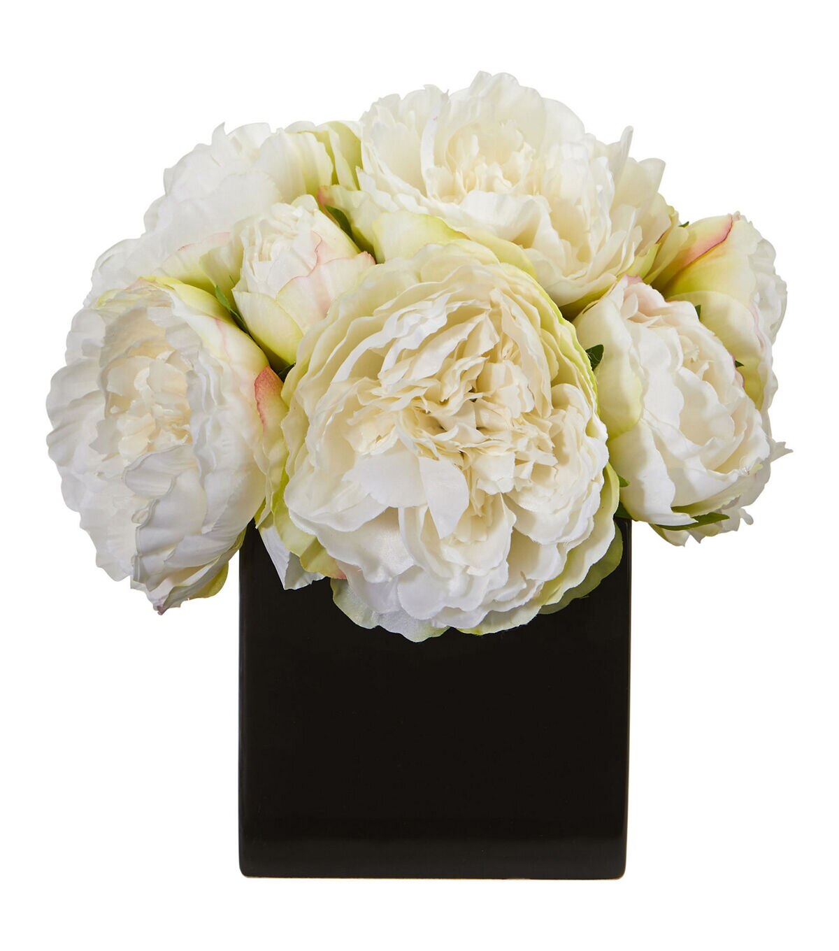Opt for a sweet centerpiece with this gorgeous arrangement of artificial peonies. Whimsical and romantic, this everlasting beauty flaunts flowers in full bloom that instantly give a sense of welcome wherever displayed. Nestled in an all black vase, they’re perfect for placing on top a bedside table.
