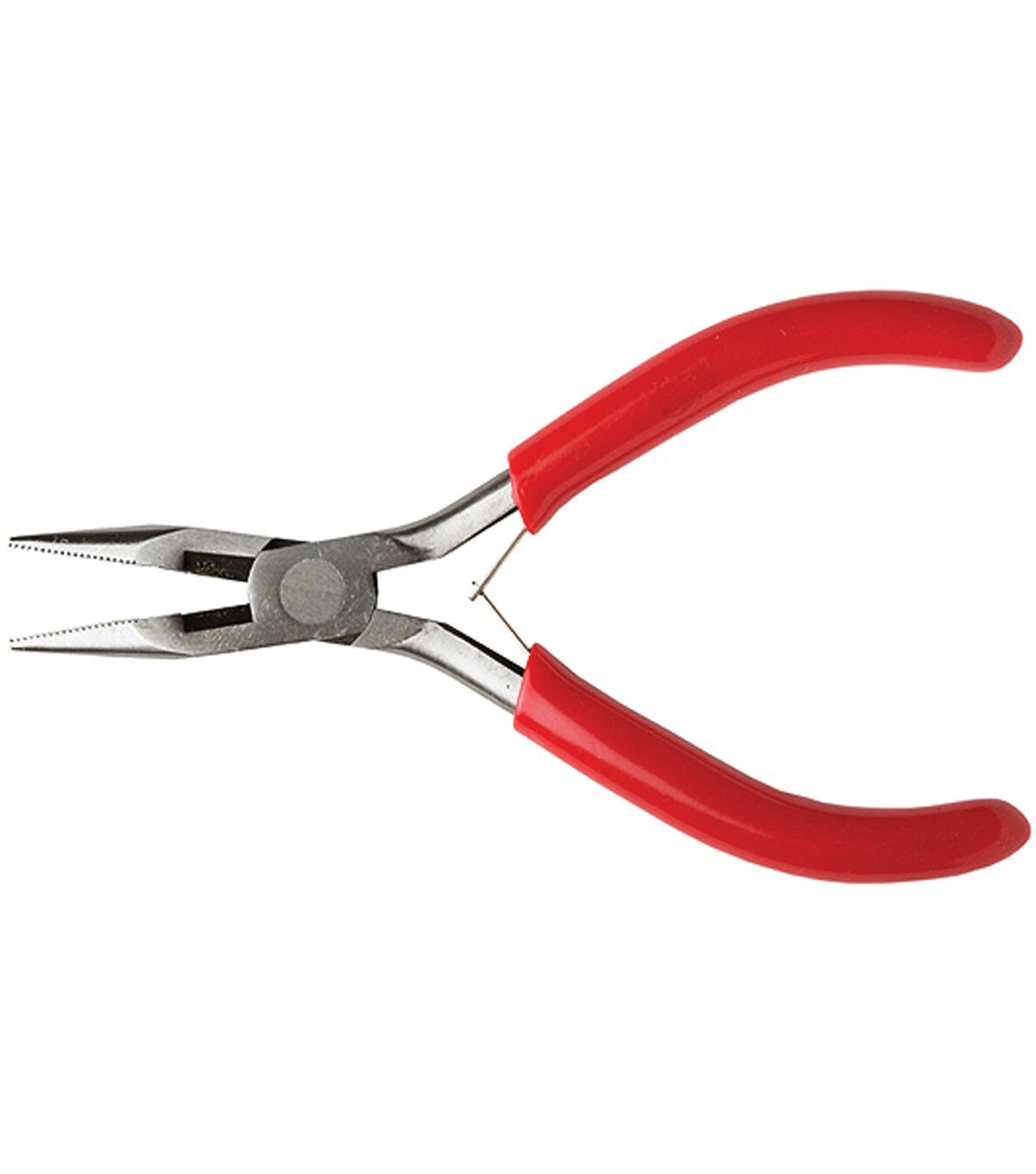 EXCEL-Needle Nose Pliers with Side Cutter. These needle nose pliers are suitable for cutting; shaping; bending; and gripping lightweight materials. They have a spring-action design and the handles have a padded grip for added comfort. The overall length of the entire tool is 5 inches. The nose pieces are 1 inch long surface and the cutting surface is 1/4 inch long. This package contains one pair of needle nose pliers with a side cutter. Made in USA.