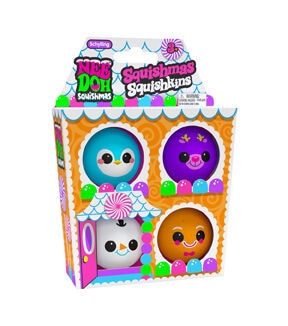 Doh-ho-ho - Squishmas Squishkins are here to make your holiday squishy and bright! These adorable lil’ guys are doh filled and come 4 to a pack in their own gingerbread house box. Each one features a squeal–worthy face printed on, and of course that satisfying squish sensation.