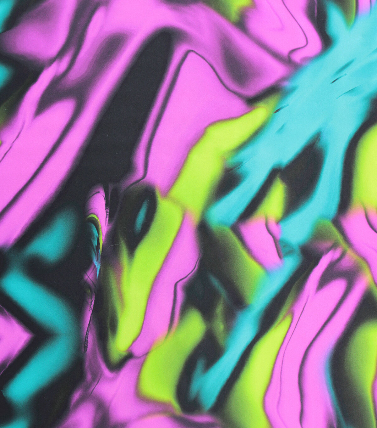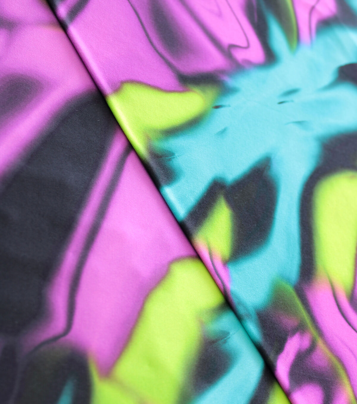 • Neon Lime Purple Turquoise Blur Double Brush Jersey Knit Fabric