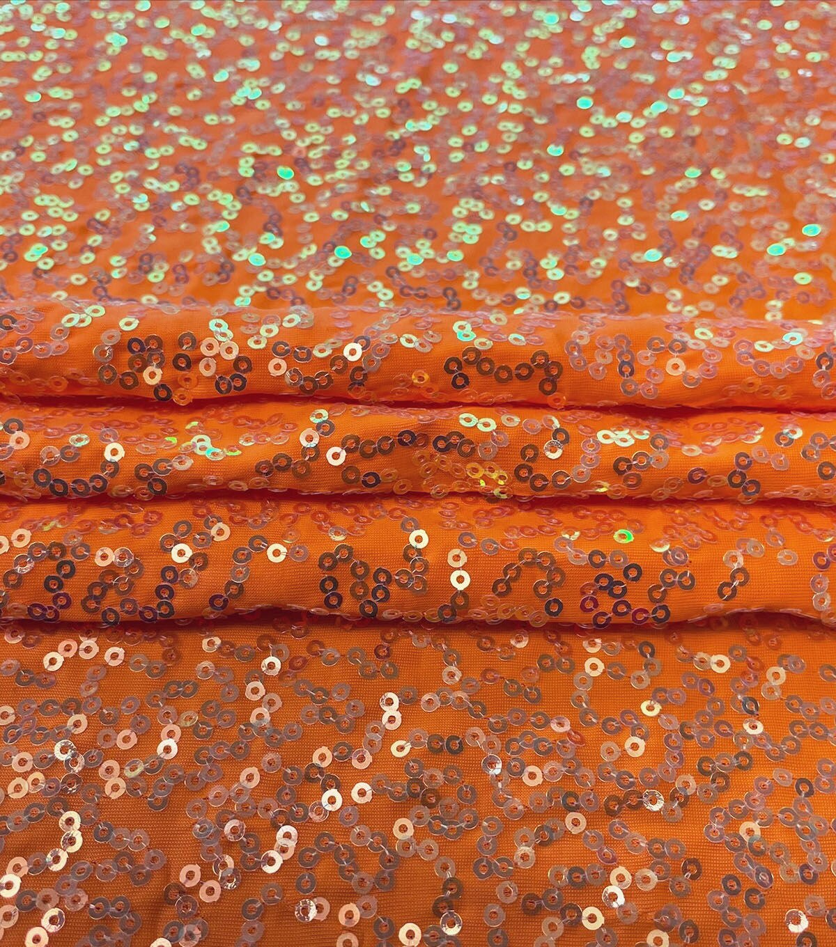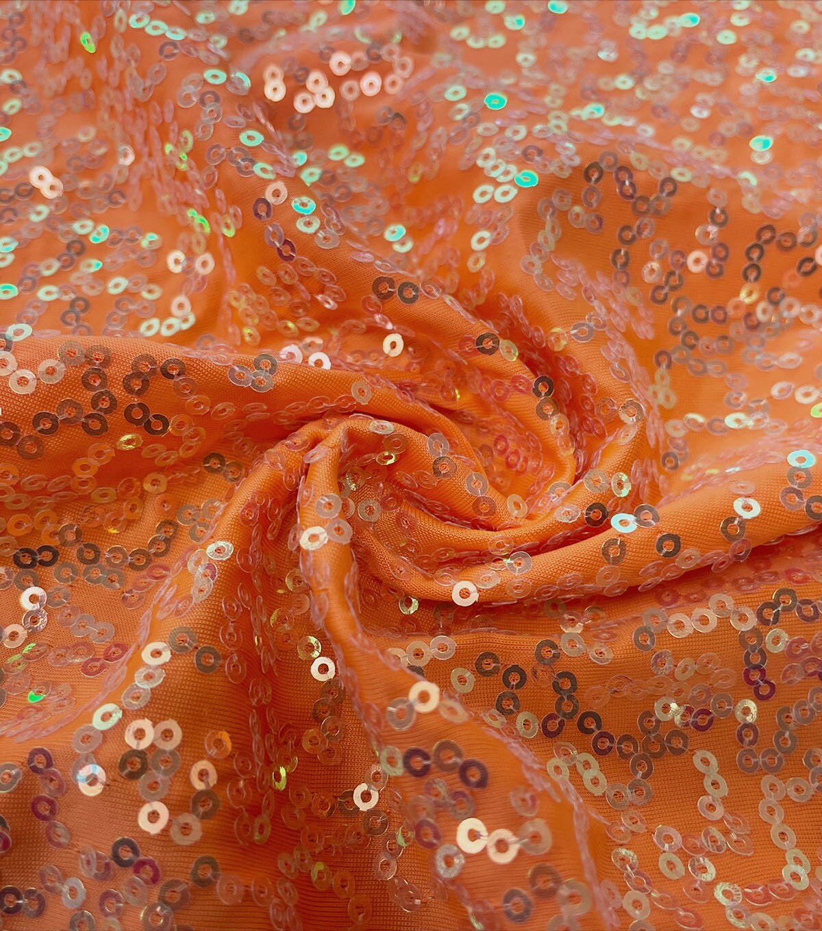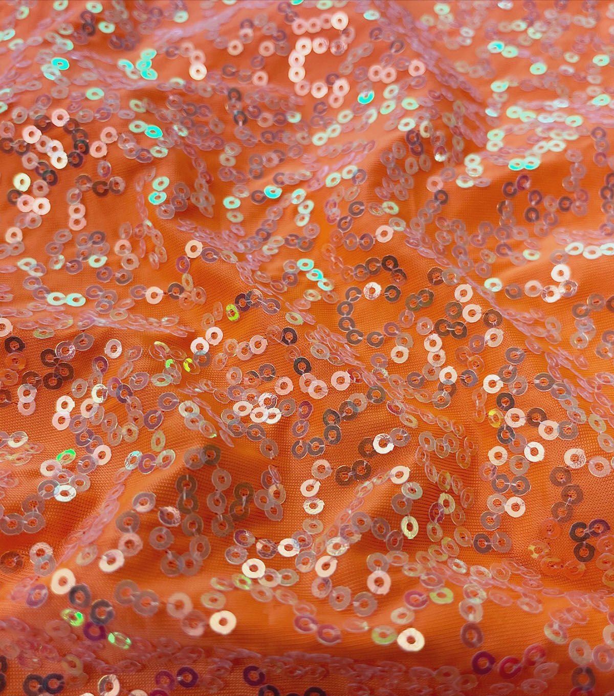 Shine Bright with Neon Orange Iridescent Sequin Spandex Fabric