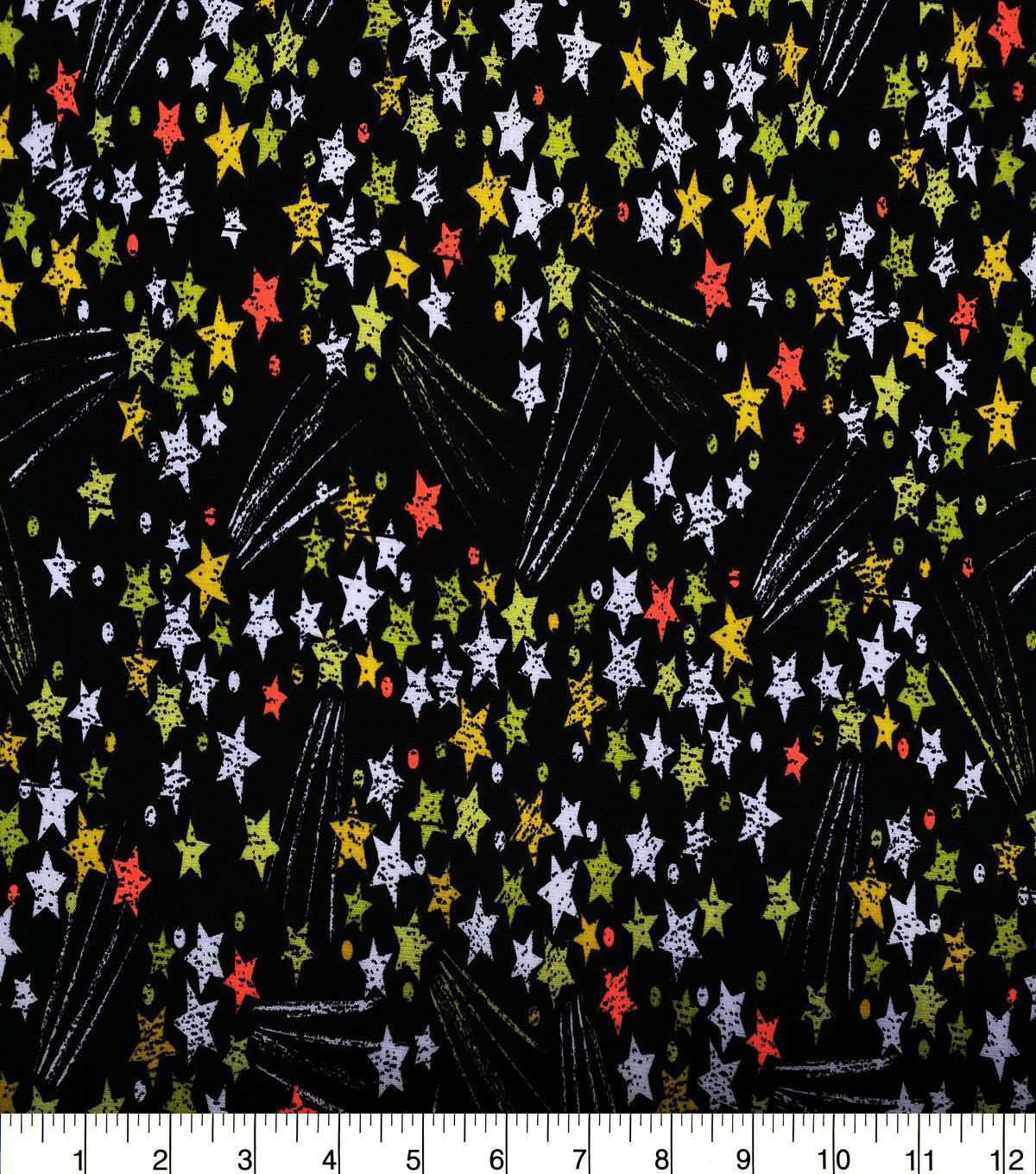 Neon Shooting Stars on Black Quilt Cotton Fabric by Quilter's Showcase
