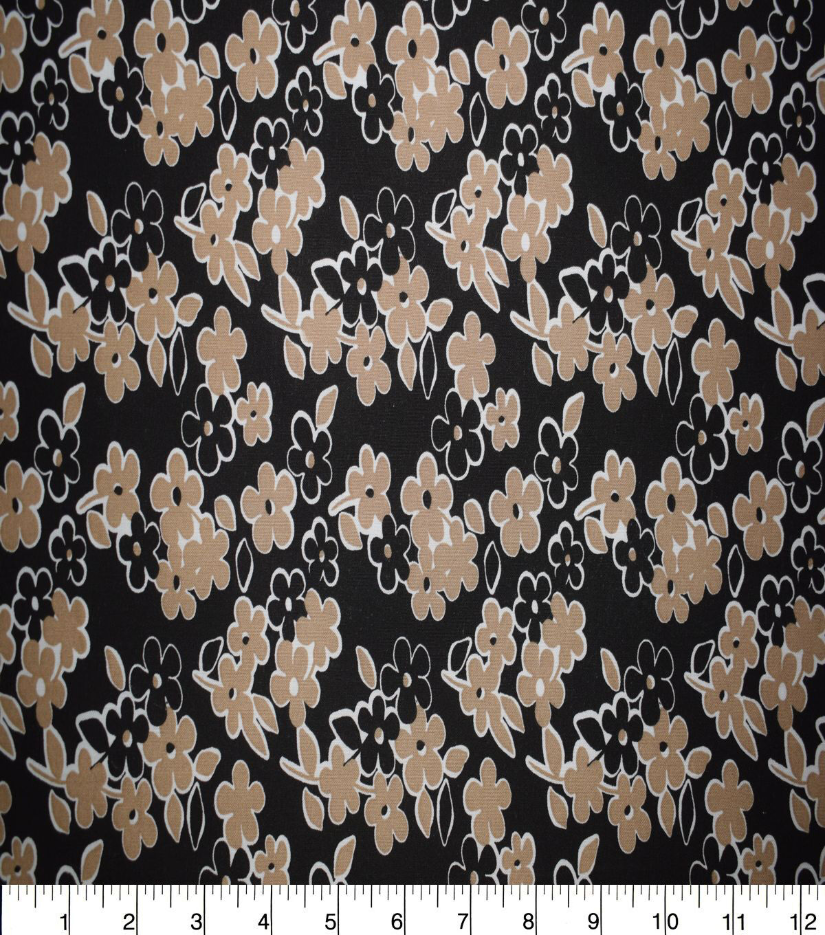 Neutral Floral on Black Quilt Cotton Fabric by Quilter's Showcase