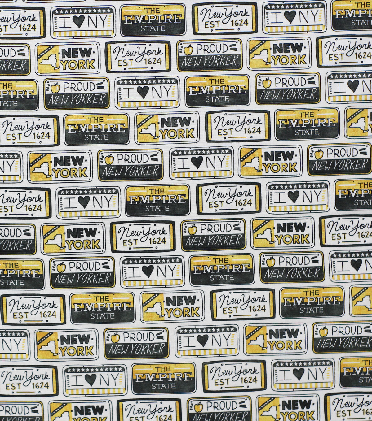 New York License Plate State Pride Cotton Fabric