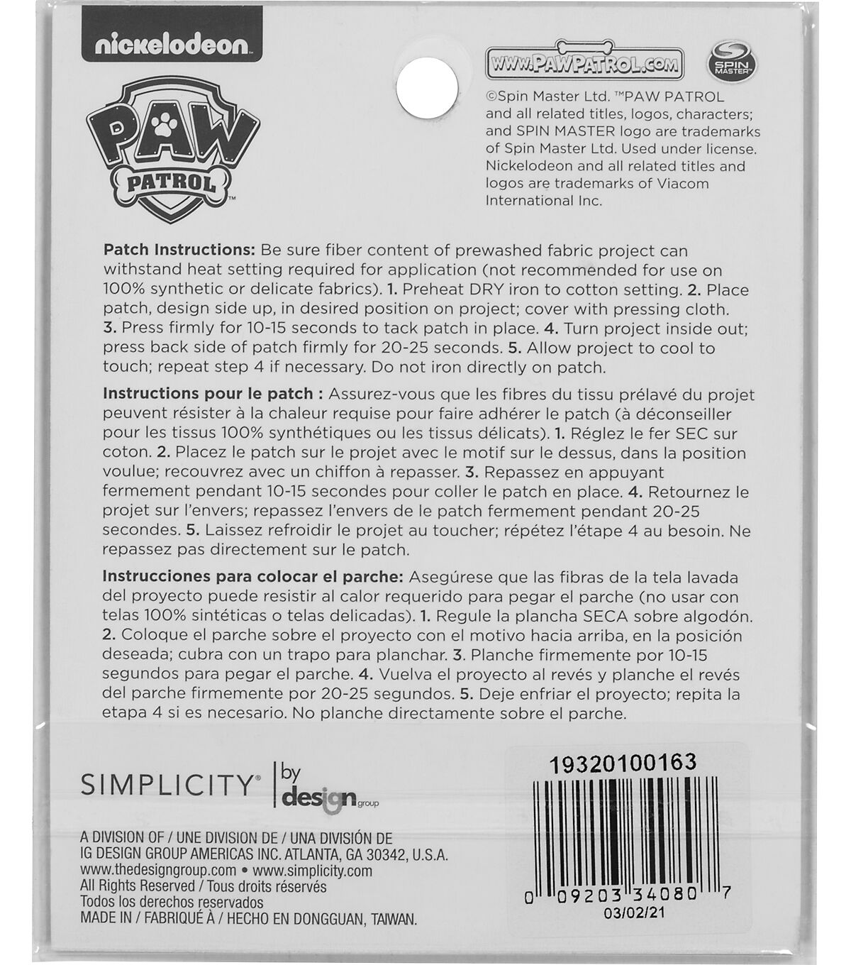 Iron-on patches are an easy and inexpensive way to showcase your personal style. Kids can join the crew of Paw Patrol with this fun logo patch! Attach it to a jacket, hat, or backpack. You can even incorporate it into decorations for a Paw-Patrol themed birthday party. ©Spin Master Ltd. ™PAW PATROL and all related titles, logos, characters; and SPIN MASTER logo are trademarks of Spin Master Ltd. Used under license. Intended solely for non-commercial home use. The patch has a heat-seal backing for ironing, but depending on your project it can be applied with glue or sewn onto item for added durability. Easy ironing instructions included on back of package.