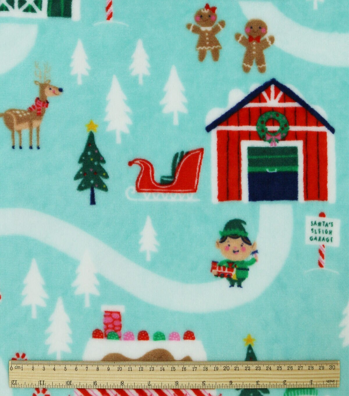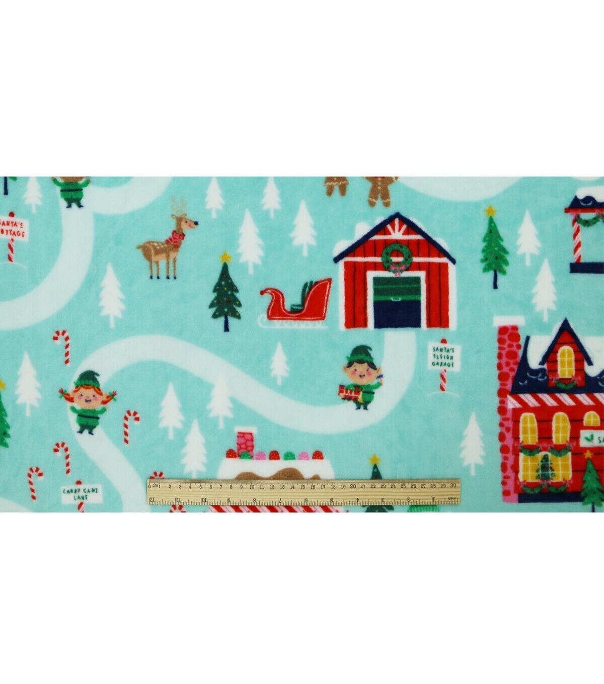 • North Pole Village on Blue Sew Lush Fleece Fabric by POP!