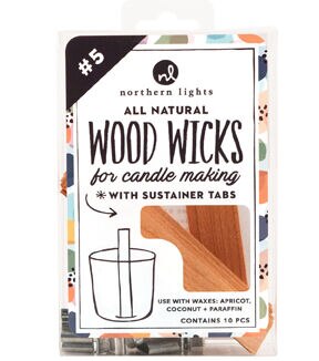 All natural wood wicks with sustainer tabs. Best used with paraffin, apricot & coconut wax blends.