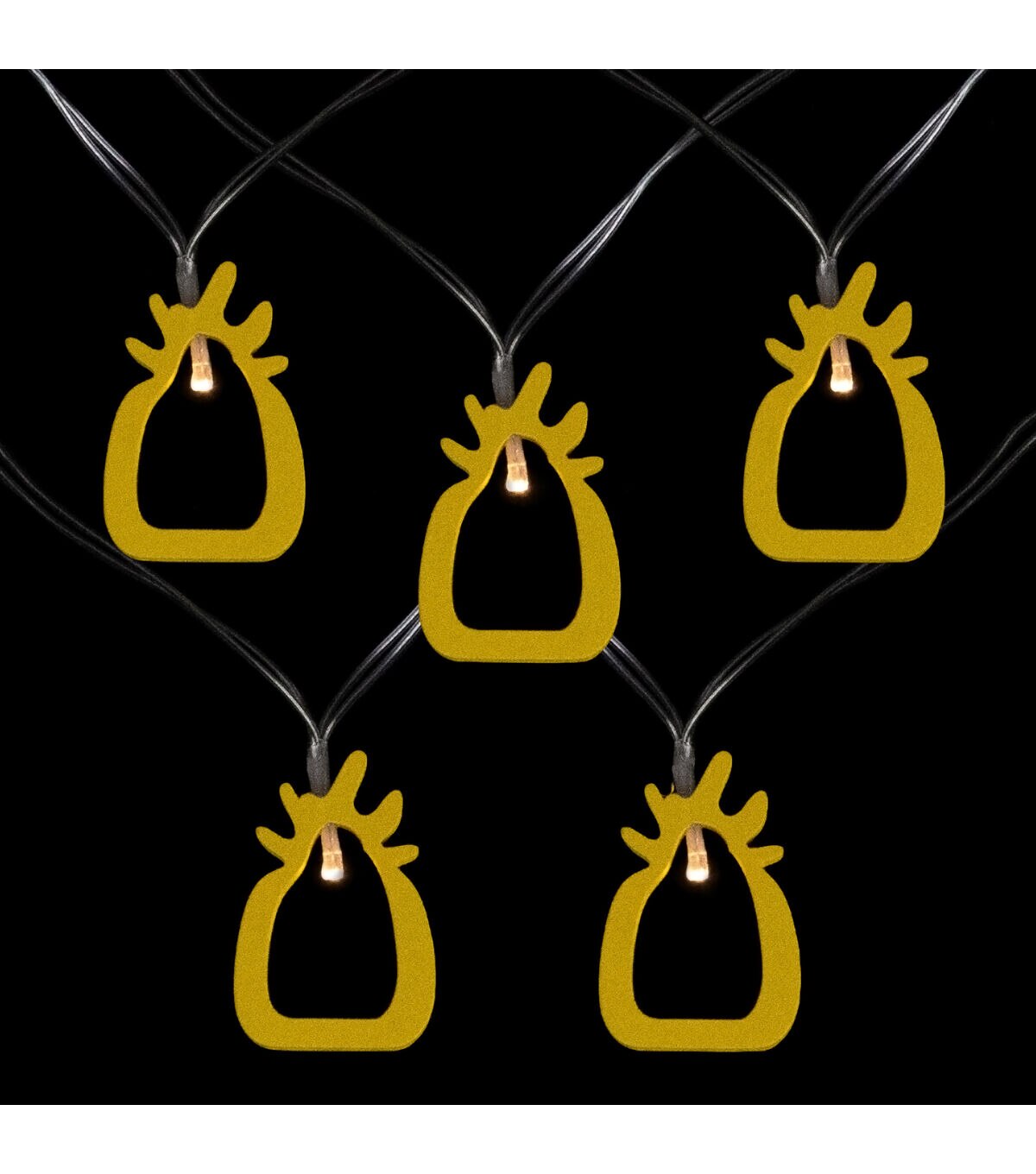 Light up your space with these adorable yellow pineapple-shaped lights. These battery-powered lights require 2 double A batteries which allow hanging from more places. Perfect for adding some holiday magic to your wreaths trees garland or add to your lanterns and vases for some unique sparkle. Product Features: Color: clear bulbs / clear wire Number of bulbs on string: 10 Requires 2 AA batteries - not included Bulb size: micro Spacing between each bulb: 6" Lighted length: 4' Total length: 5' 12" lead cord Material(s): wood/plastic/wire
